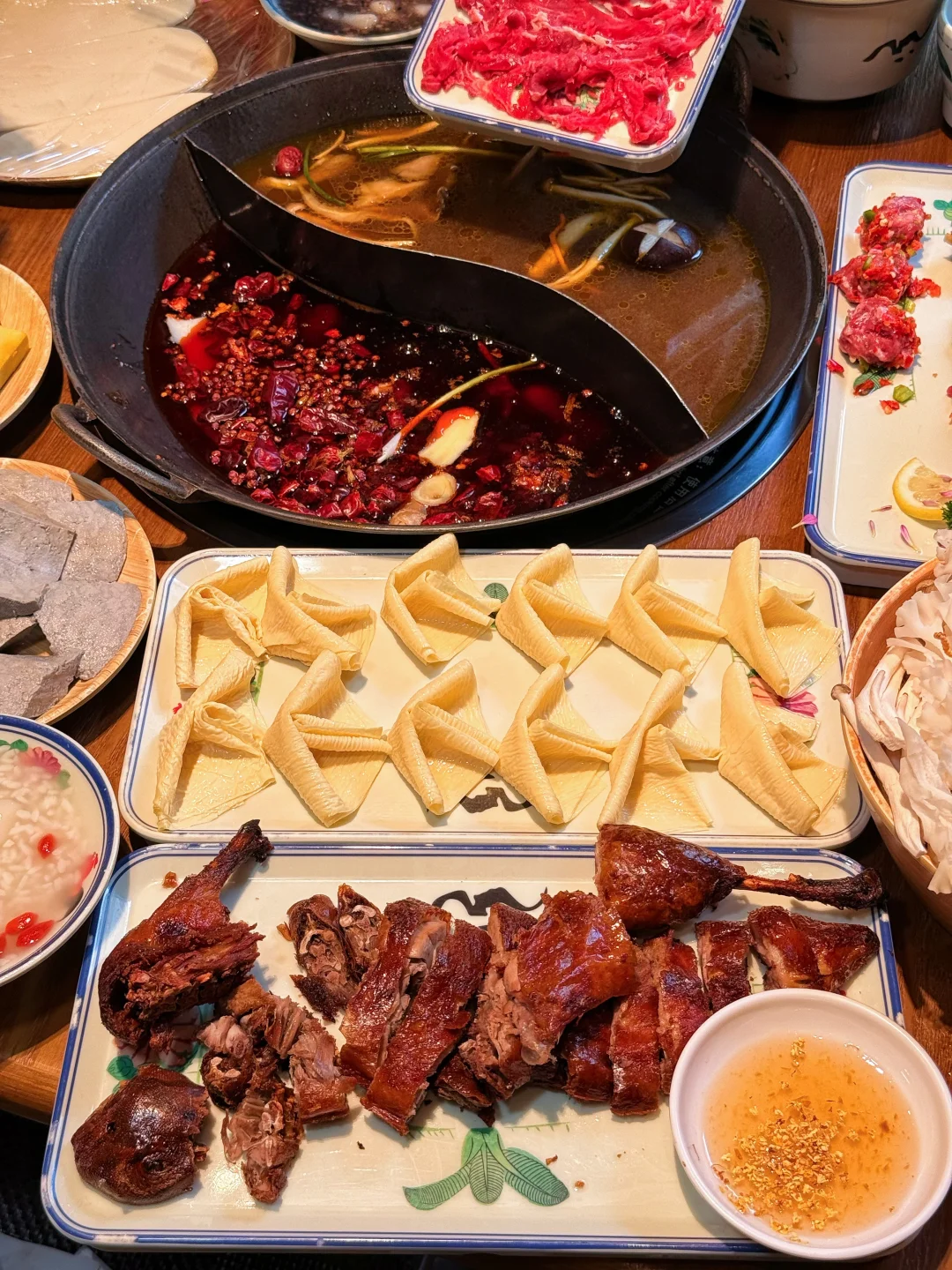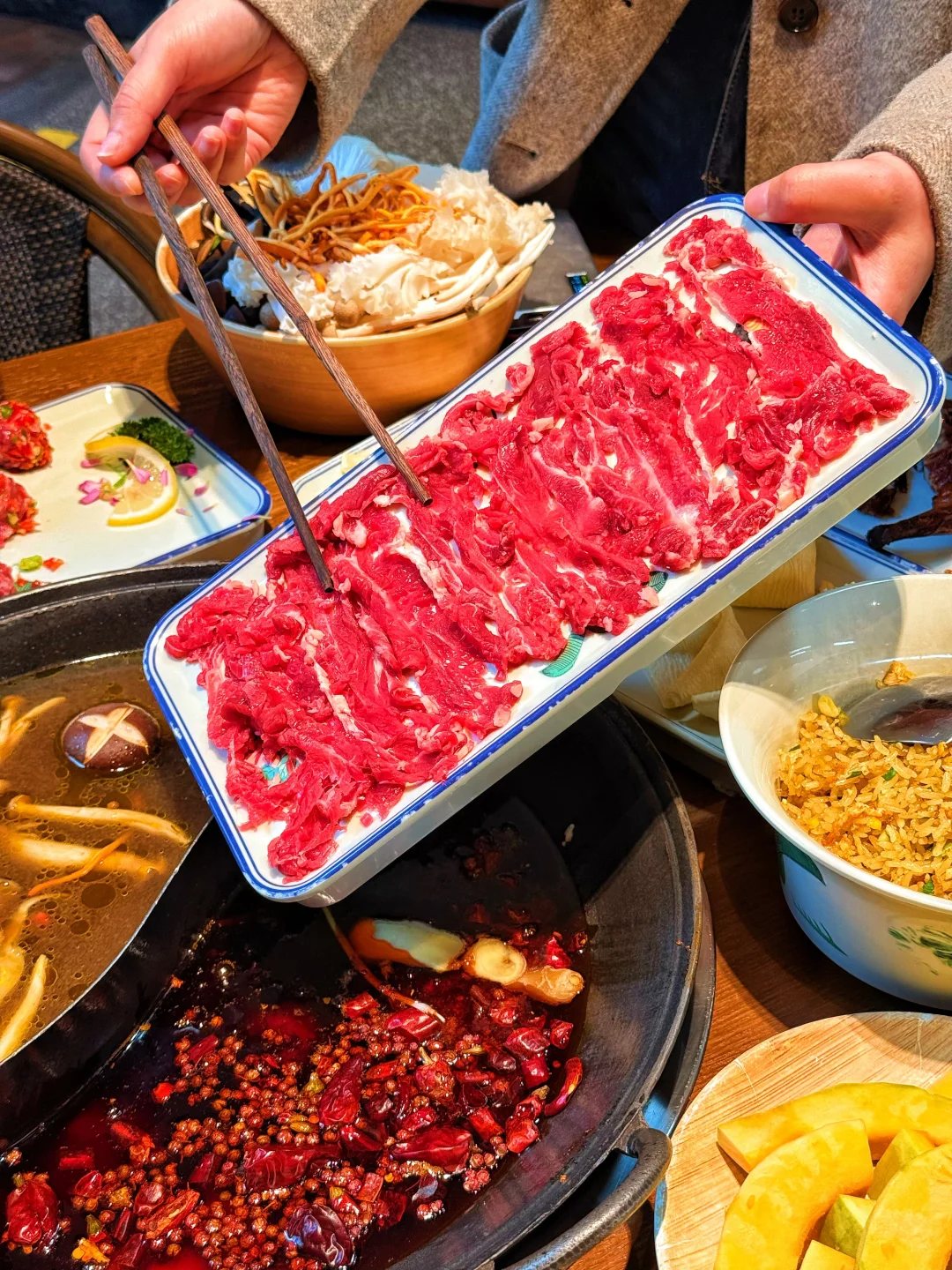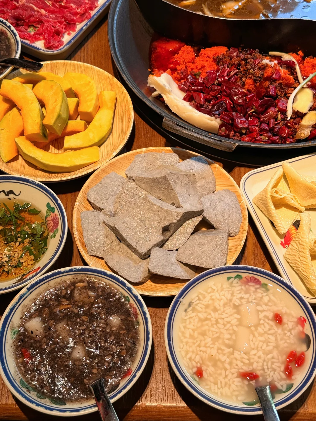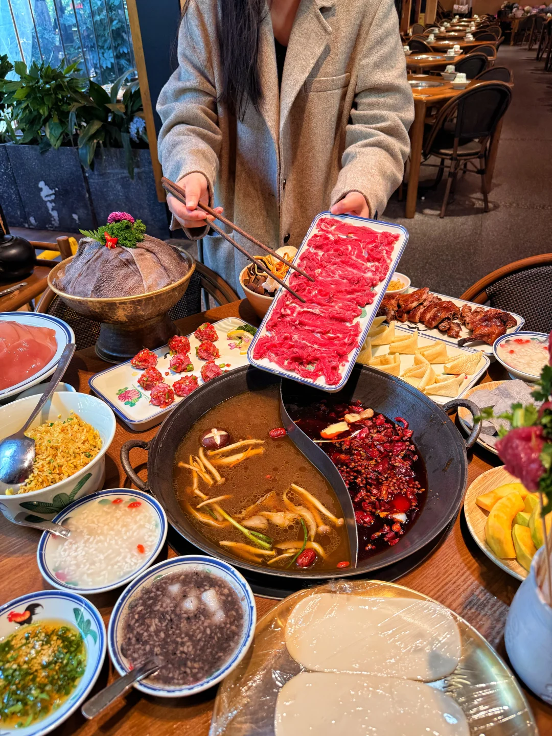 🥘牛油锅底和我上个月在重庆吃到的一样,牛油浓郁鲜香,不同于重庆火锅的是,它吃到后面也不会越煮越咸,只有牛油的香味愈发浓郁。每道菜都份量很足,盘子都是很大一个的。