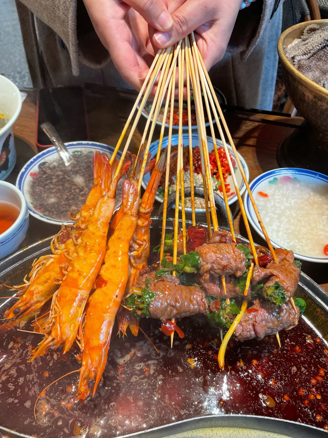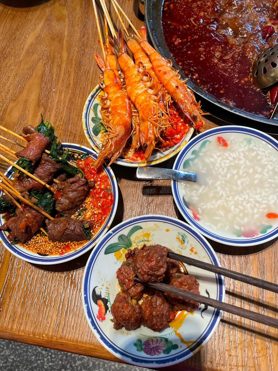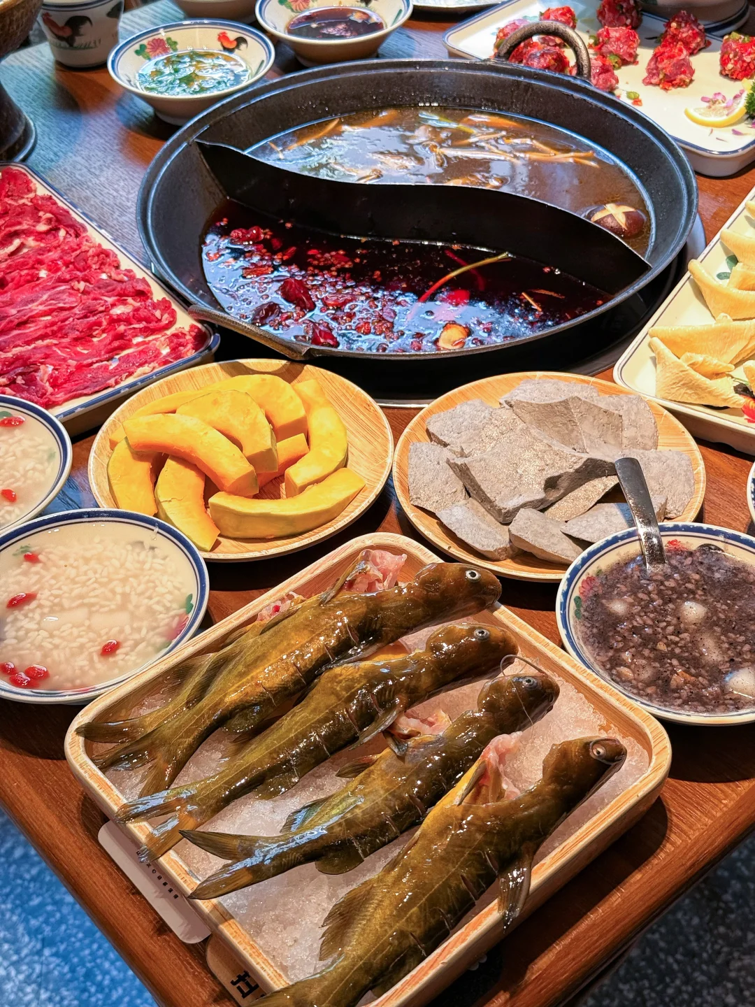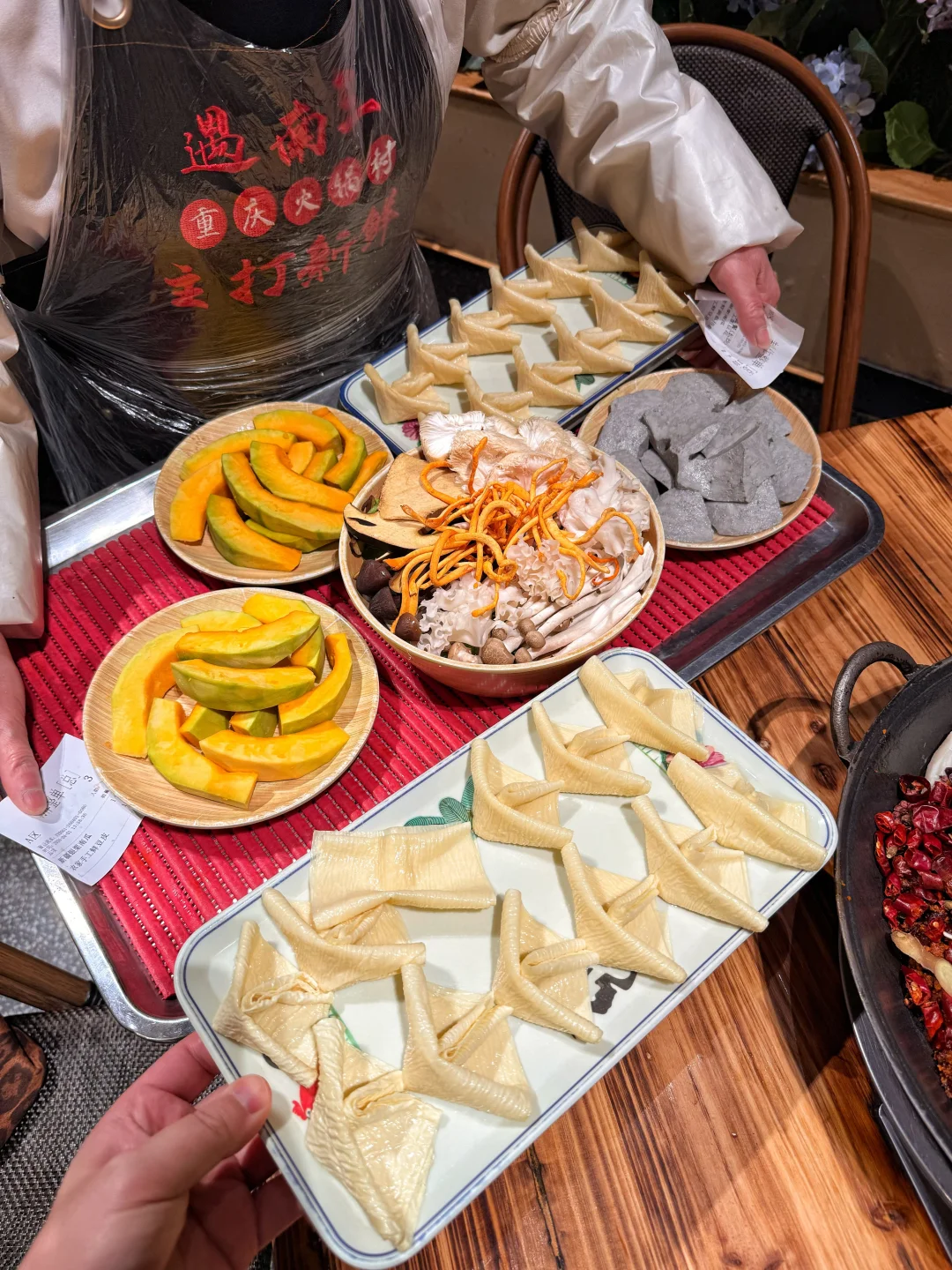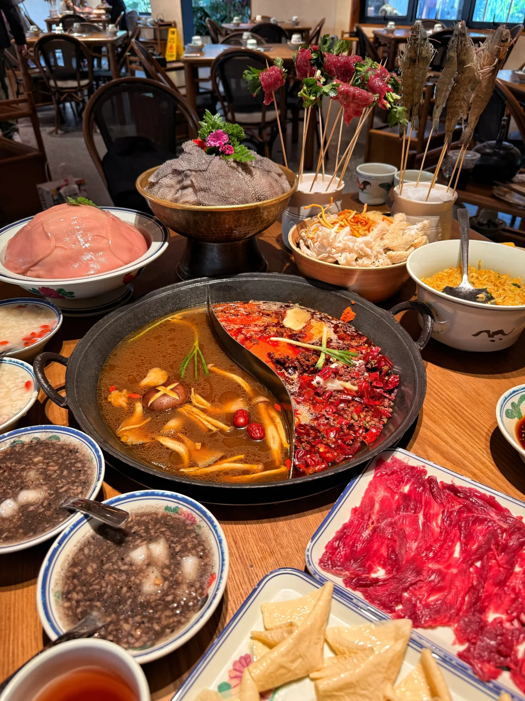 🥘牛油锅底和我上个月在重庆吃到的一样,牛油浓郁鲜香,不同于重庆火锅的是,它吃到后面也不会越煮越咸,只有牛油的香味愈发浓郁。每道菜都份量很足,盘子都是很大一个的。