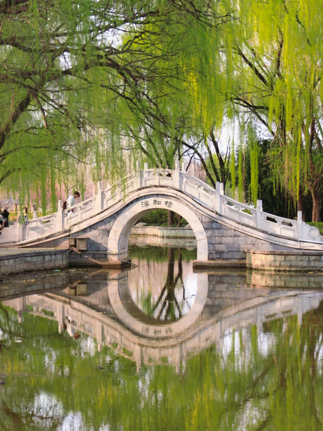漫步池边,春风拂面太惬意