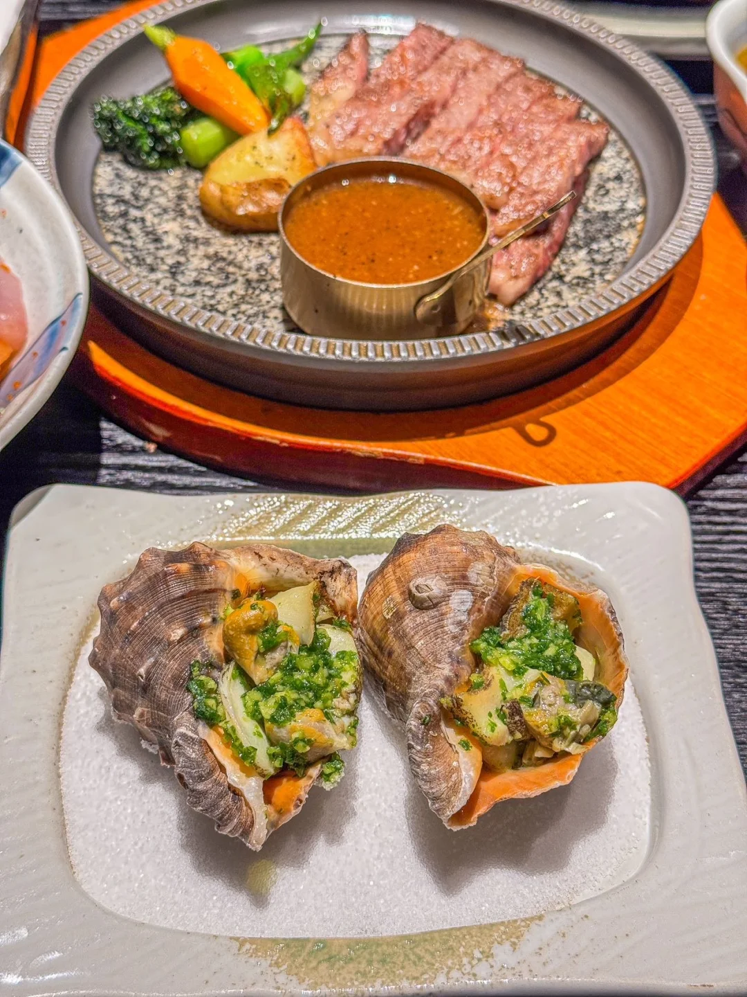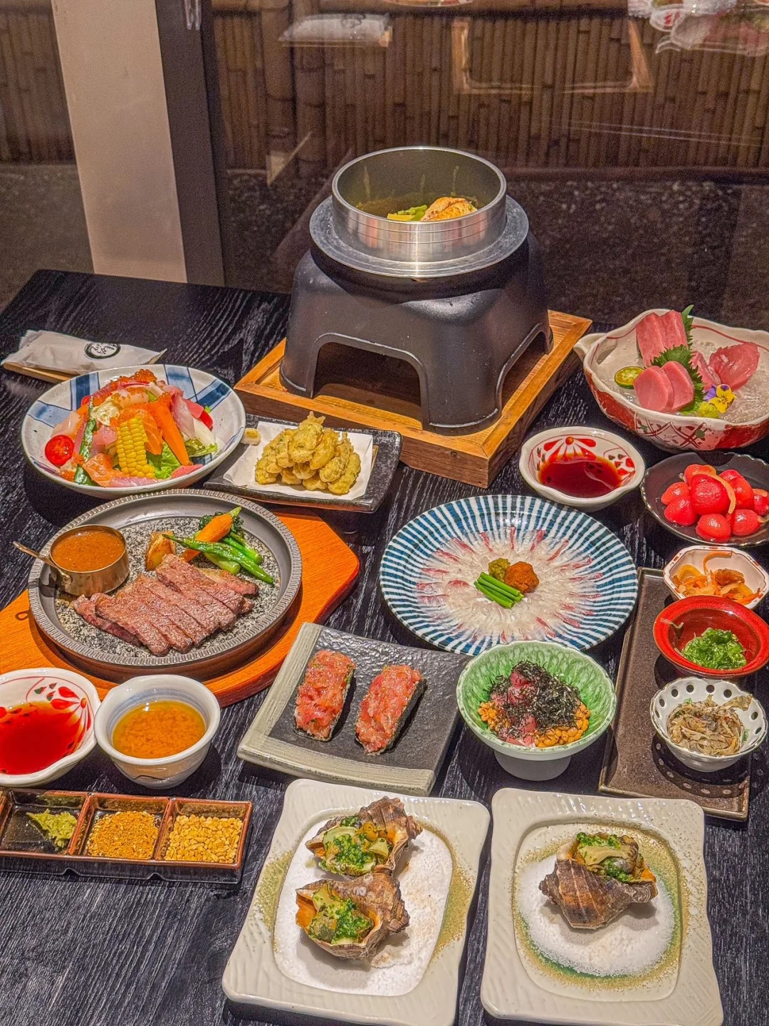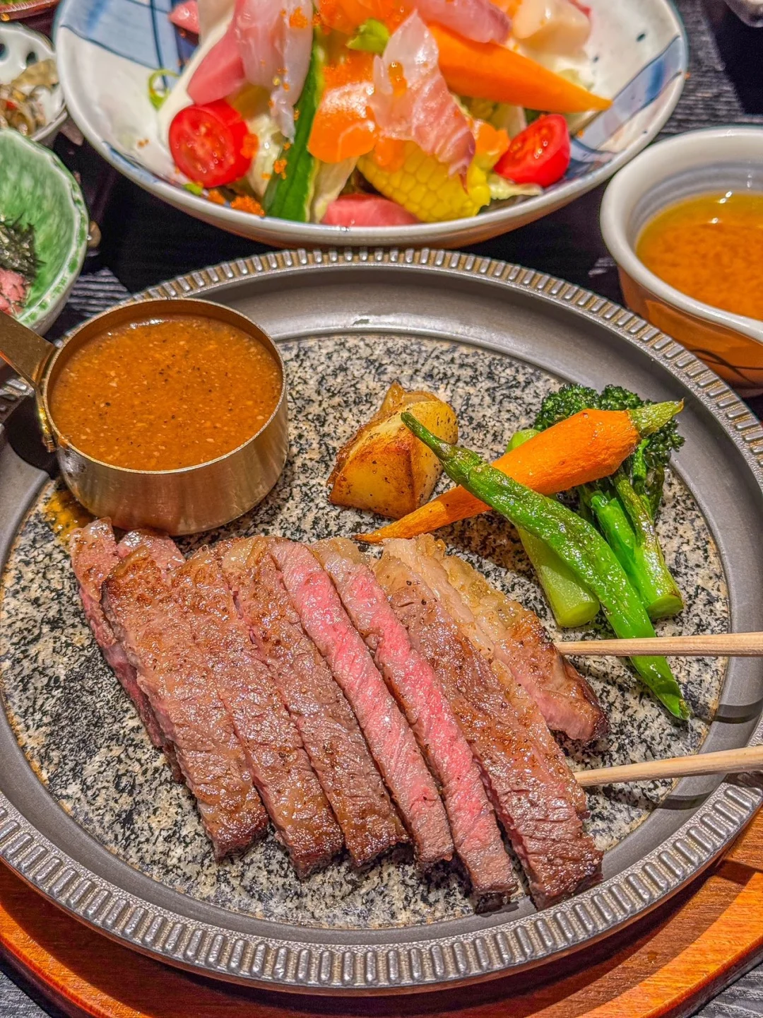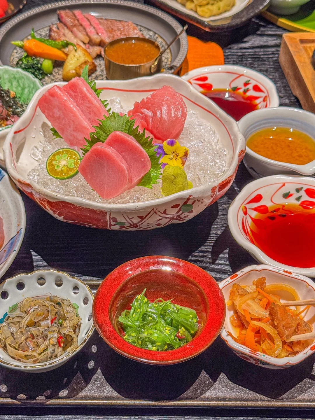 想吃点热乎的就来份熟成M7牛排,油花细致、外焦里嫩又多汁;清爽的海鲜沙拉很解腻;金枪鱼塔可 口感层次很丰富,不知不觉就见底了😋