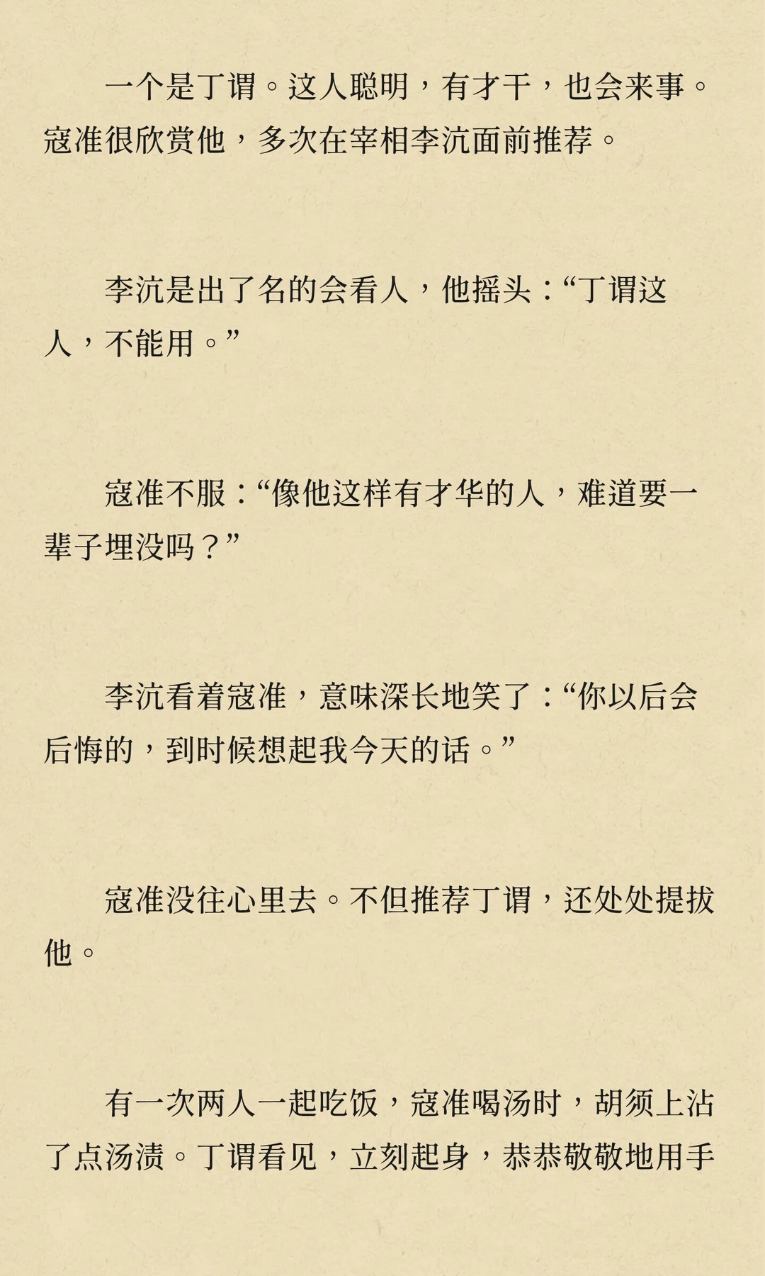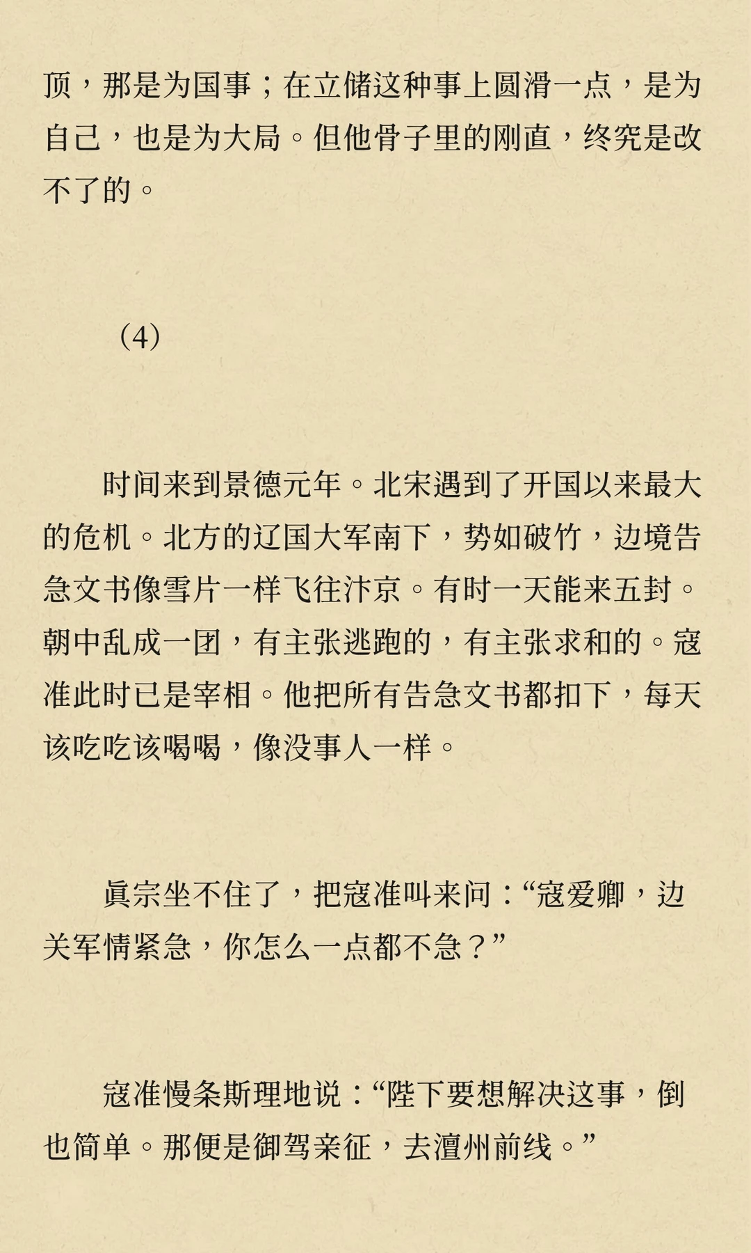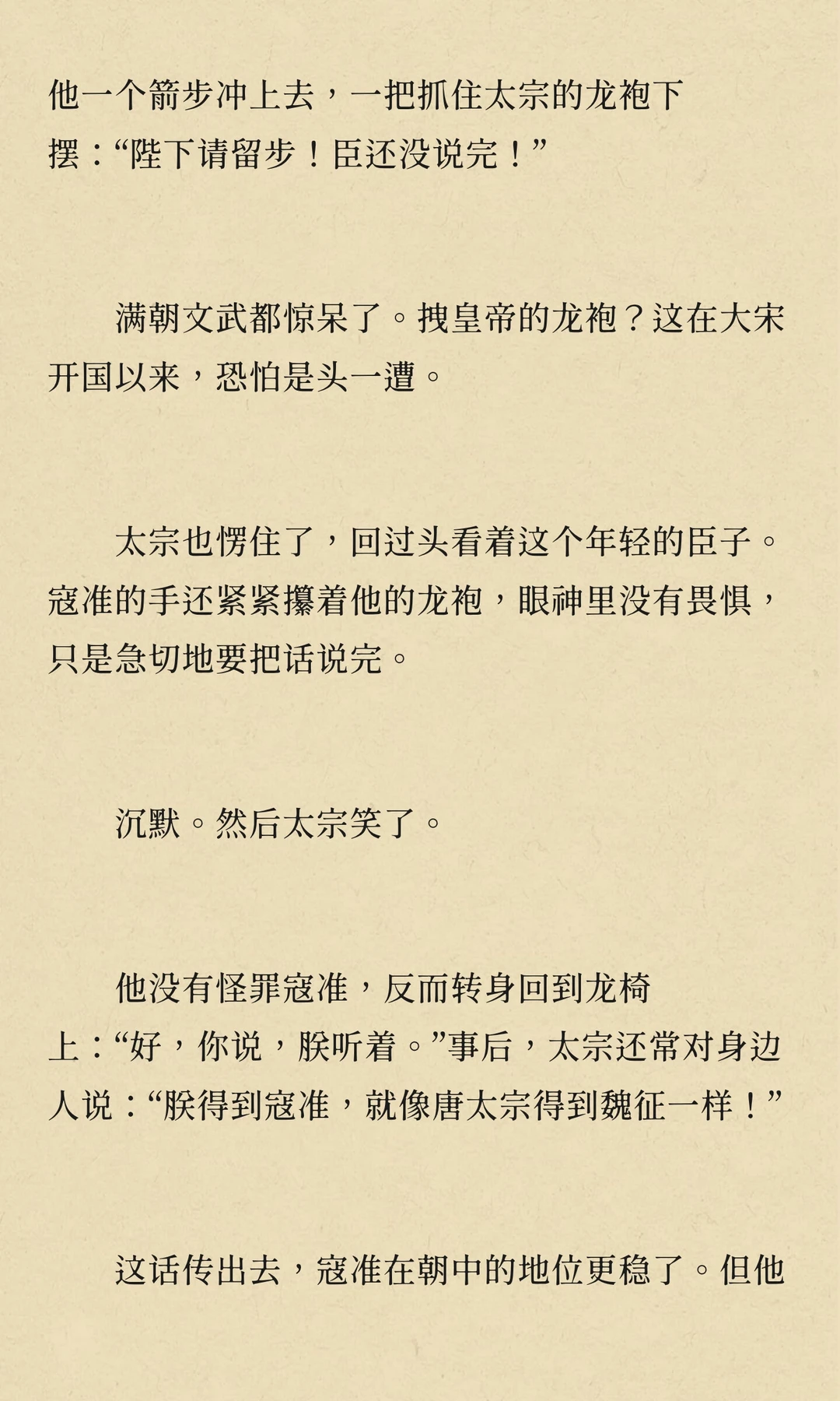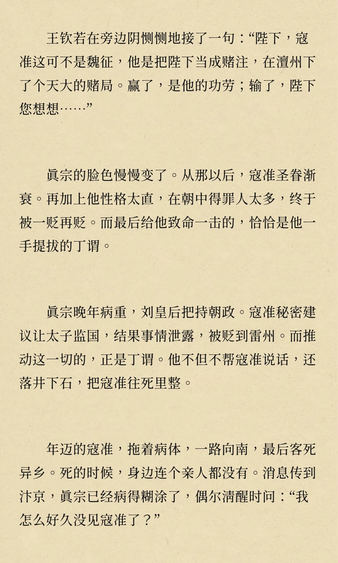 年轻时的寇准因直言不讳,得罪权贵,仕途波折。他直言不讳,甚至拽住宋太宗的龙袍。但他的耿直也让他得罪人,最终被贬。晚年,他因被陷害,客死他乡。