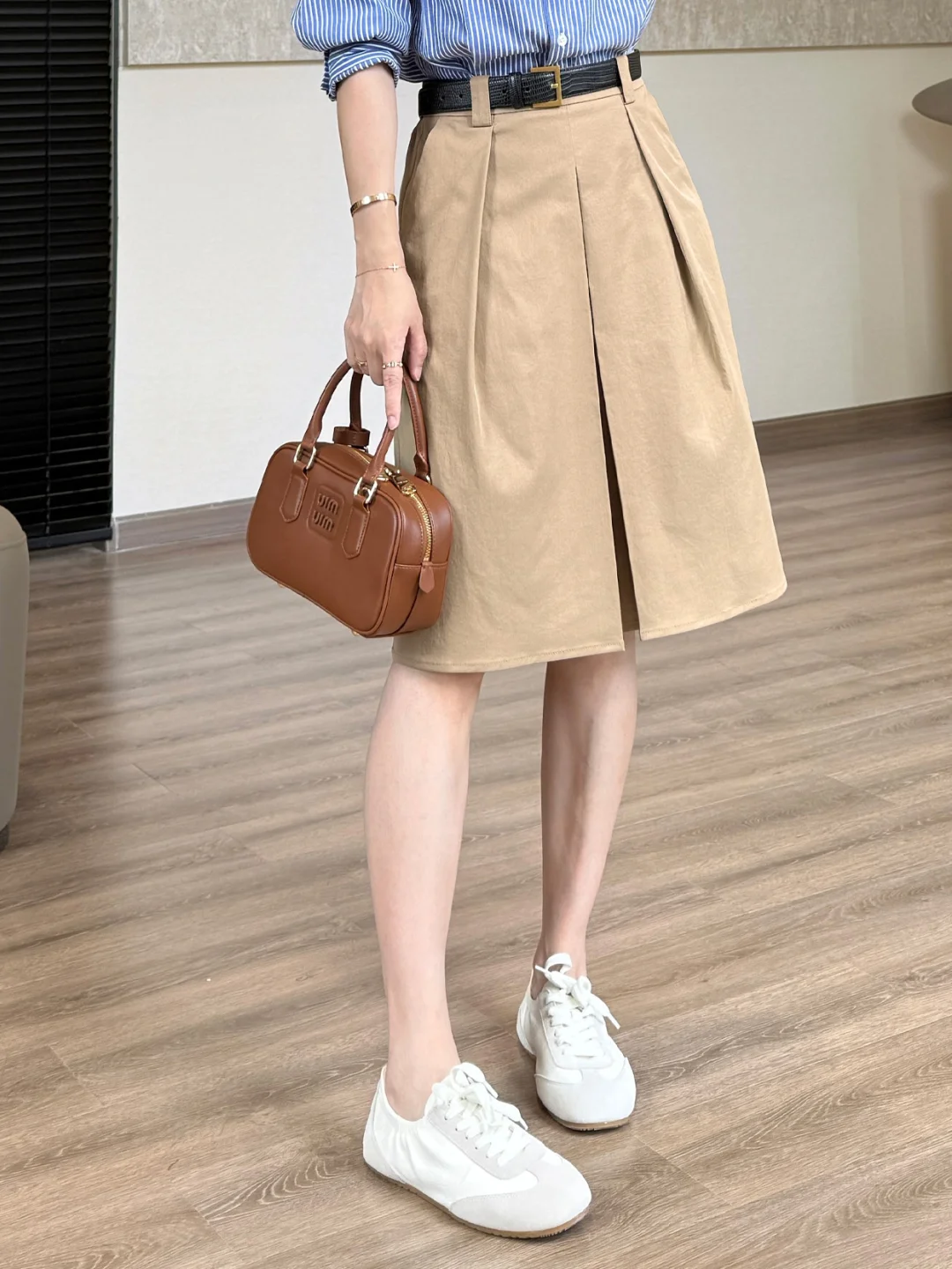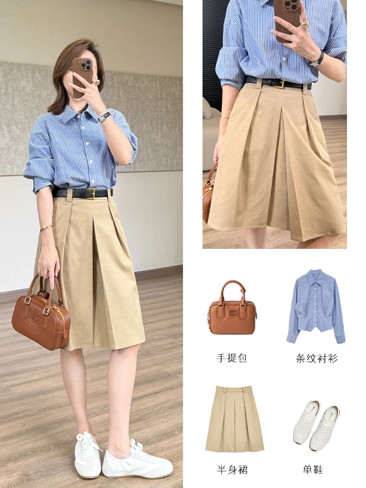 蓝色衬衫+卡其半裙 这样穿回头率直接拉满~