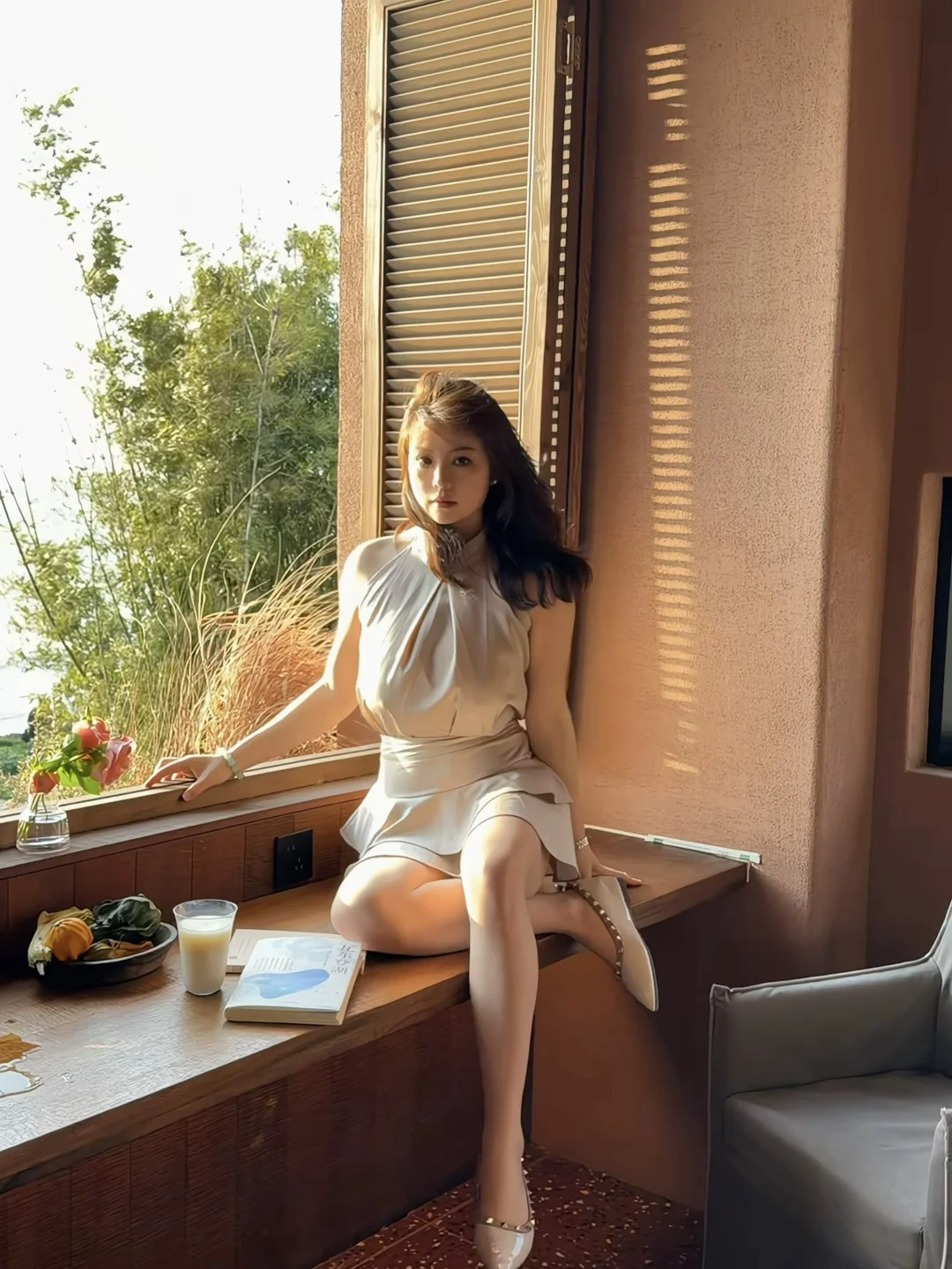 二楼窗边,海面碎金,每一秒都是不同的画。