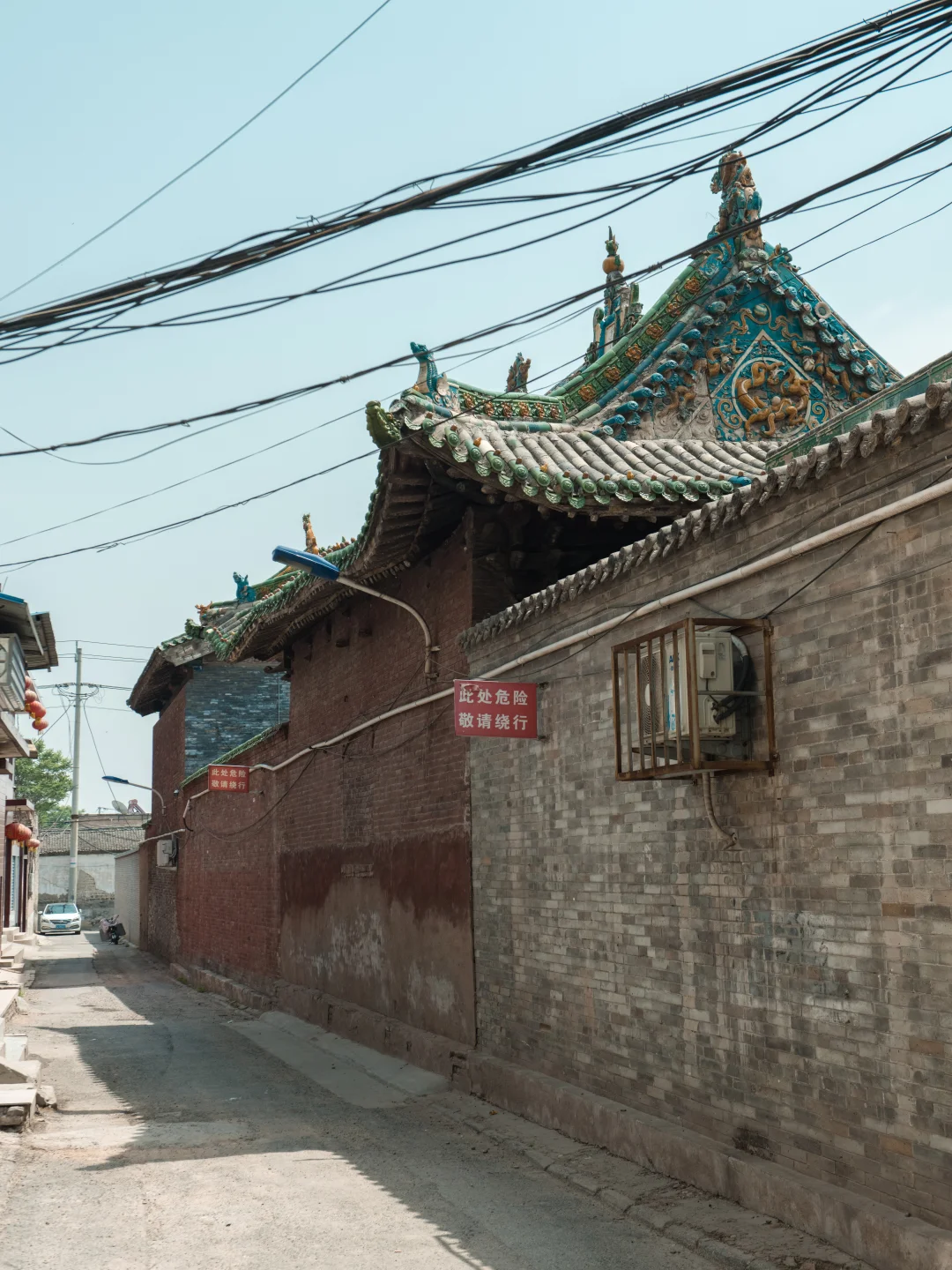 贾樟柯电影的「天然摄影棚」,斑驳的砖墙、老式理发店、挂着玉米串的门楼,烟火气与复古感拉满,随便一个角落都能拍出故事感。