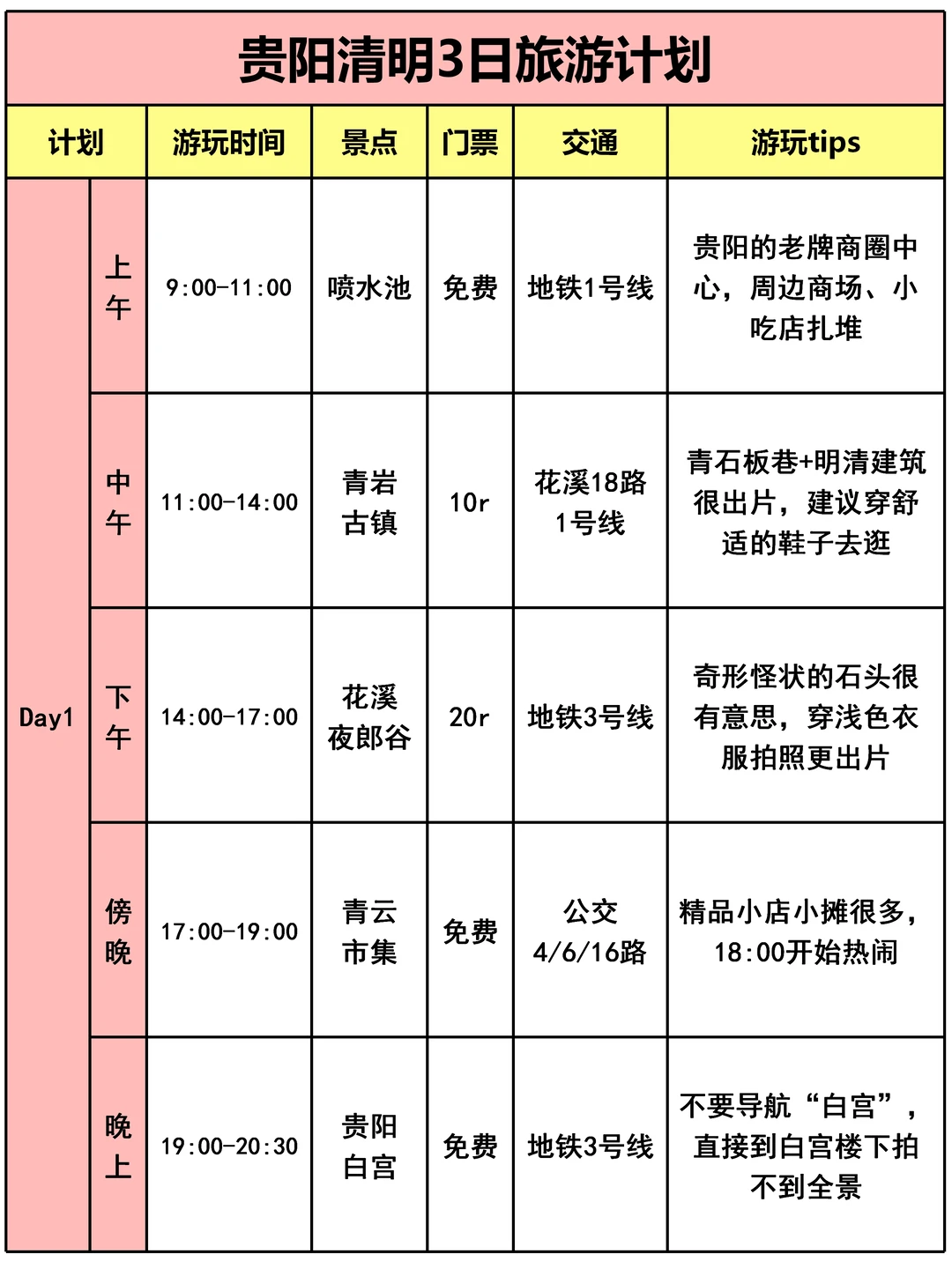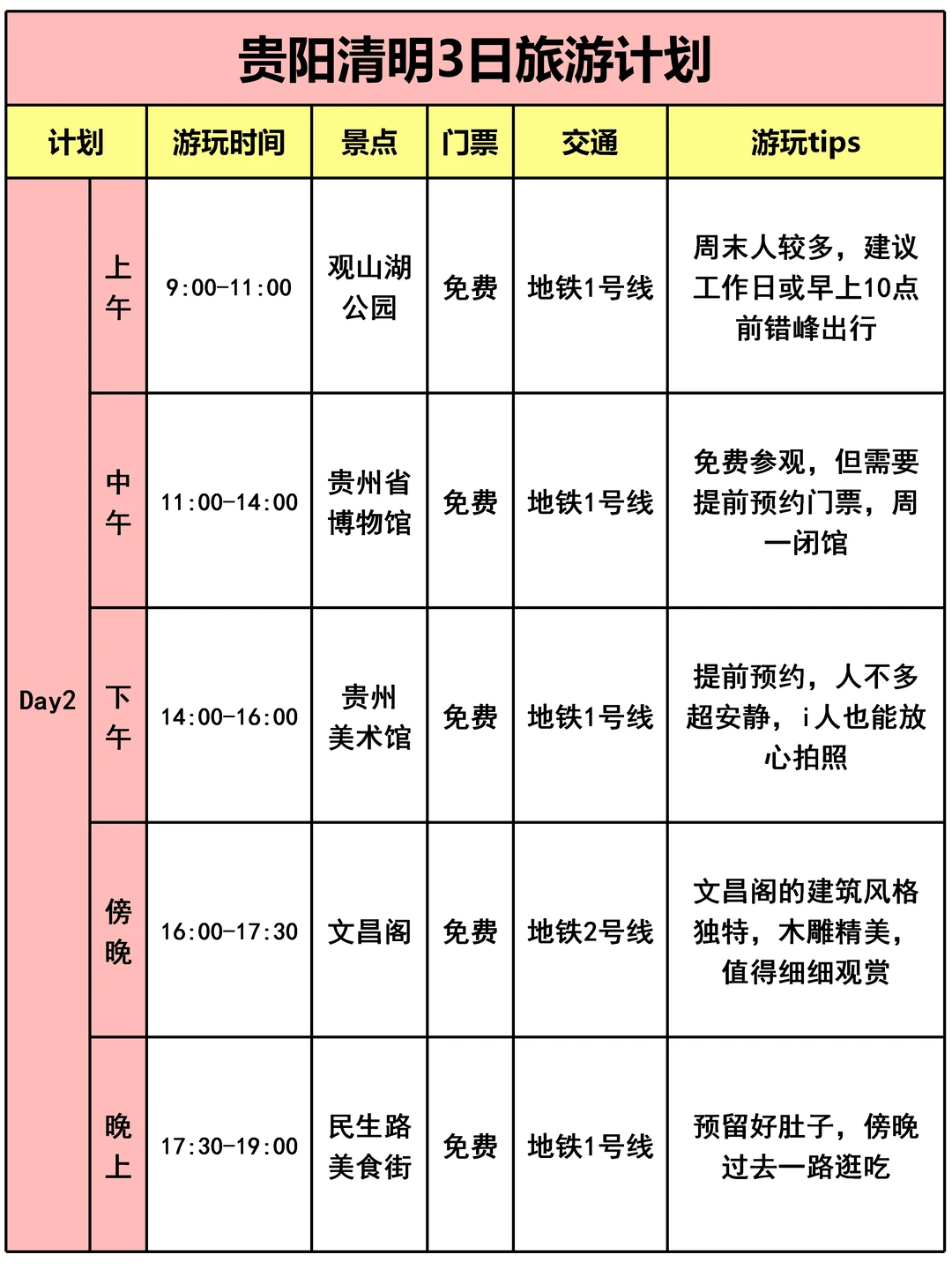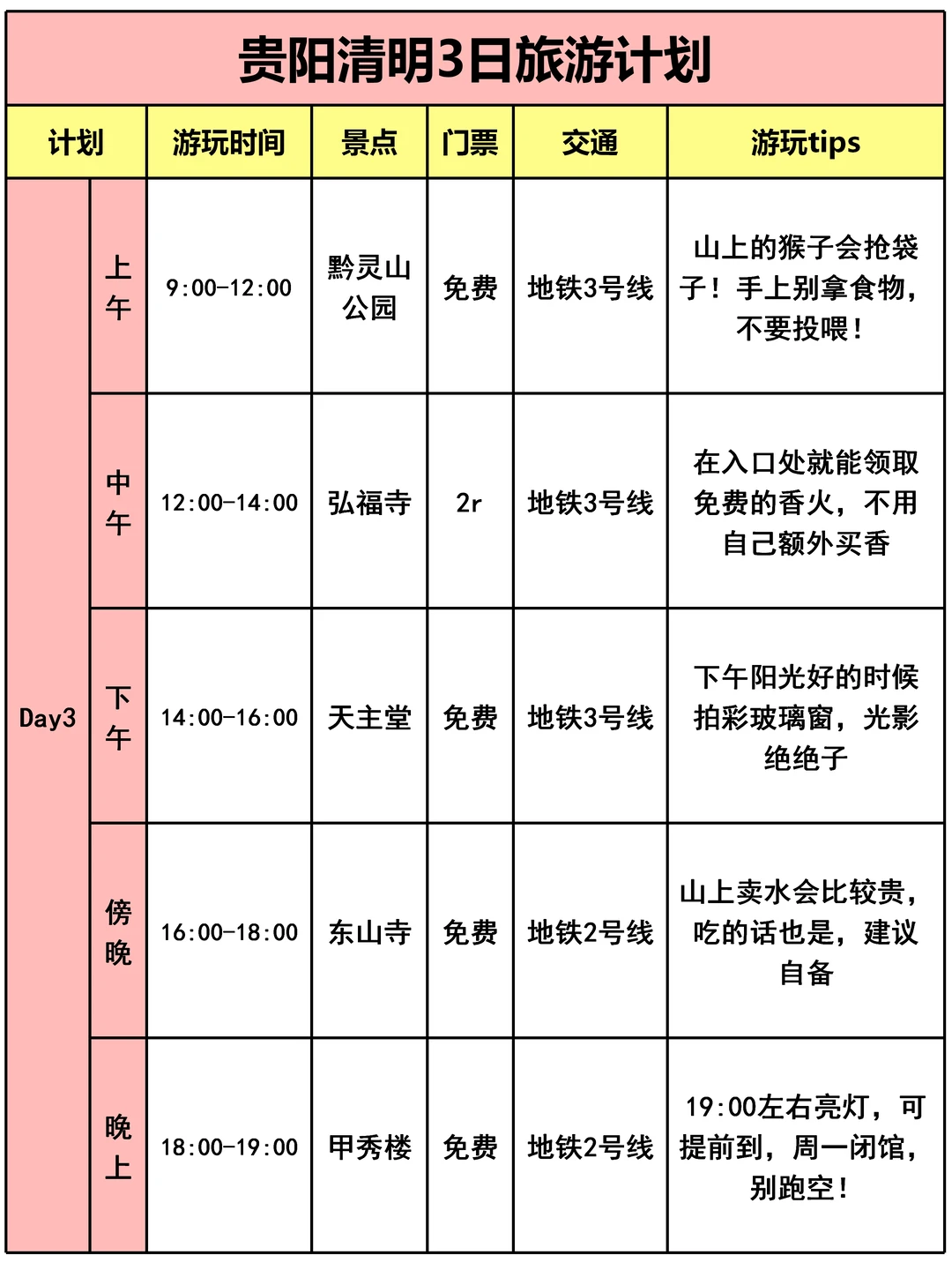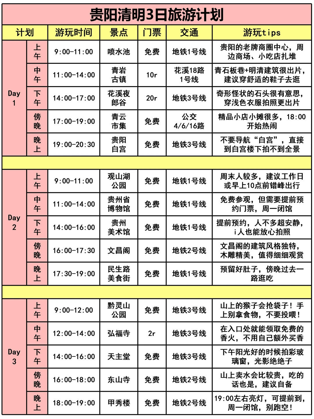 🚶贵阳3日游行程安排