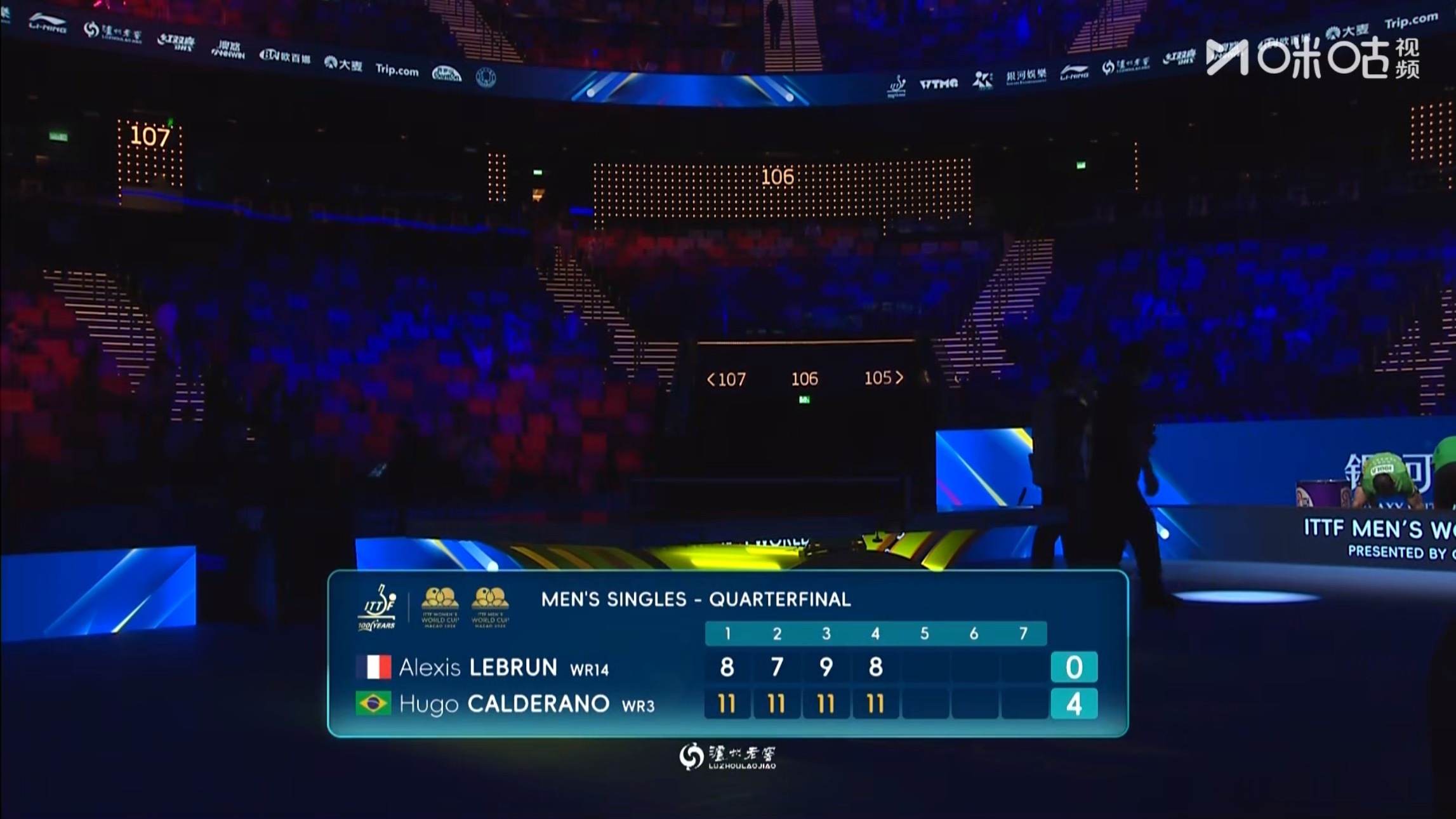 卡尔德拉诺4比0 A勒布伦(11-8,11-7,11-9,11-8)晋级澳门世界