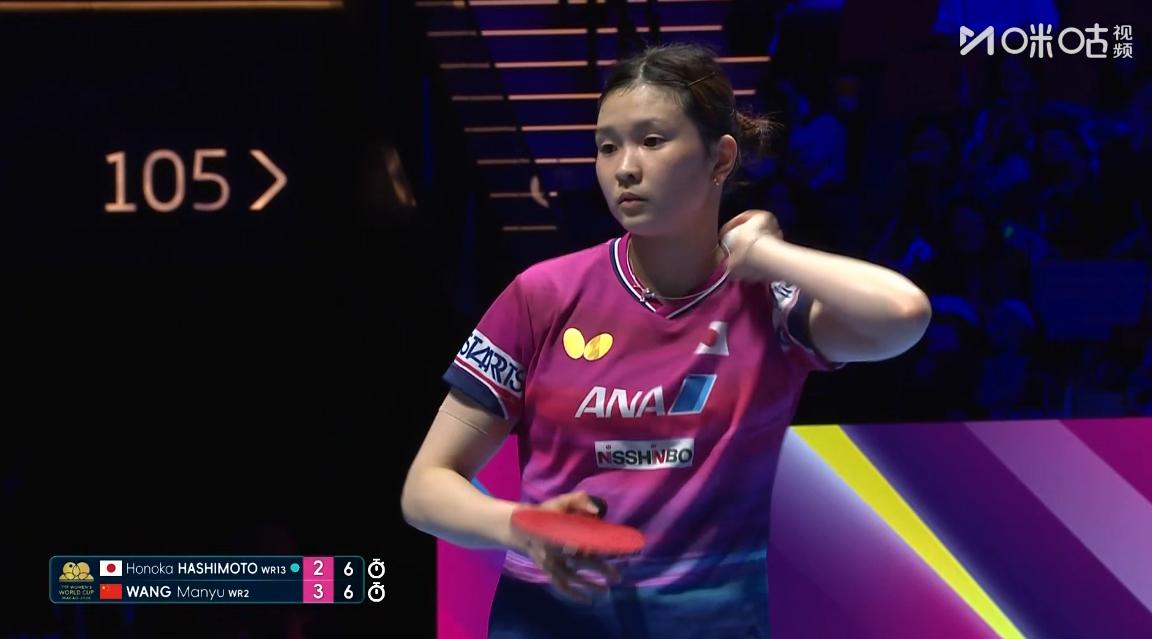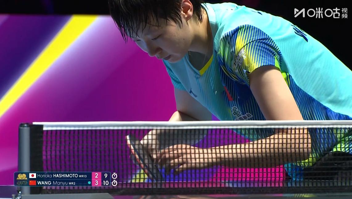 为什么曼昱累得满头大汗,桥本则没怎么出汗?难道是桥本有没有秘籍? 刘国正说,曼昱是进攻一方, 要持续发力, 则桥本只是被动削球, 不用过度发力, 这场比赛曼昱打的很顽强, 桥本也是韧性十足, 两人竟然打到了数板, 每个人打一分, 打完立马换发球, 而且发球一方要在13板内赢球, 否则就判对方得分, 虽然曼昱作为进攻一方占优势, 但依旧不能大意, 毕竟桥本连消带打的能力实在太强, 可惜桥本还是棋差一招, 决胜局曼昱10:9领先, 最后一个球, 曼昱在打到第12板时爆冲得分, 可以说是险胜, 真是太心疼曼昱了