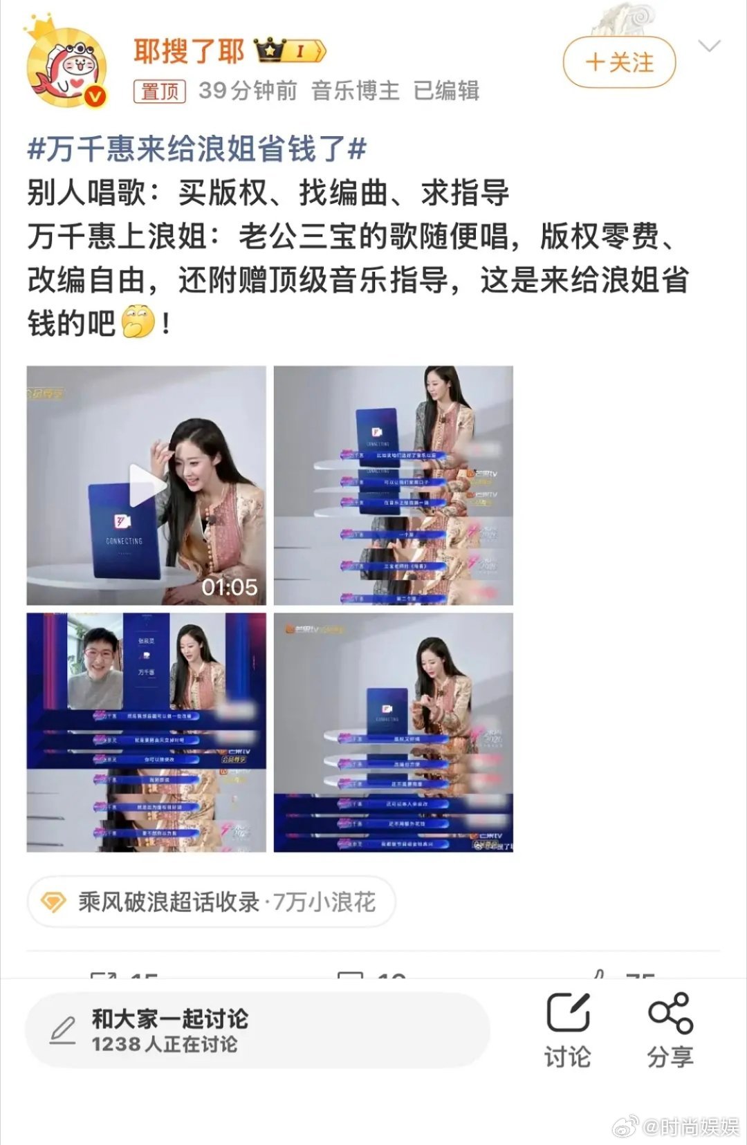 57岁的音乐制作人三宝老师送自己33岁的娇妻万千惠上节目,失去表情管理了,最近万