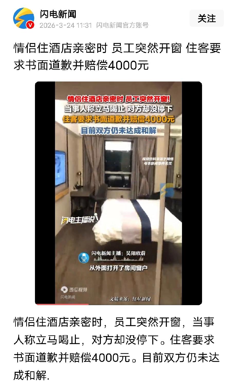 河南郑州,男子和女友正在亲热,房门突然被打开,一大叔站在门口把他们看了个精光,大叔与男子对视5秒后慌乱逃离,事后男子先酒店讨说,结局让人唏嘘。 3月21号晚上,梁先生和女友入住河南郑州某酒店,他们对这家酒店的服务和环境都还算满意,在此之前已经入住了十几次。 当天晚上,两人在外边玩到很晚才住进酒店的,两个人都很累,洗洗就睡了,第二天两人睡到很晚才起床。 大概中午左右,酒店客服发信息问梁先生需不需要帮他打扫房间卫生? 梁先生明确回复他们说,不需要,只需要放一些生活日用品在门口就可以了。 梁先生和女友都以为自己已经跟他们交代清楚了,而且那么大一个酒店,应该在管理上做得很到位,所以他们很信任酒店,入住的时候并没有反锁门。 当天下午大概3点左右,梁先生和女友在床上亲热,突然听到有人敲门,梁先生大声问道:“谁、谁、谁?” 就在他还没反应过来的时候,房门“吱呀”一声被打开了。 梁先生和女友都吓到了,赶紧往门口看,他们发现一个大叔定定站在门口看着他俩。 大叔和梁先生对视了5秒左右后,才问道:“需不需要开水?” 梁先生气得火冒三丈,大声吼道:“放门口就可以了。” 事后,梁先生越想越气,越想越觉得委屈,报警处理。 民警来到后,大叔跟警方交代,他是保洁员的老公,在帮老婆给客房送水。 他跟民警承认,他跟梁先生对视5秒后就转身逃离了。 梁先生听了觉得更加郁闷,为什么保洁员的老公,一个非酒店员工也有房门密码锁,难道酒店房间门的密码锁是随随便便给外人的吗? 可酒店和保洁阿姨却有不同的说,他们一致表示,保洁员老公是在门口敲门3次后,没有听到回应才打开门的,而且只是开了一条缝,什么都没看到,并不是像梁先生说得对视5秒。 民警表示,等核查清楚了,会给梁先生一个说法。 可梁先生却没法接受酒店的说辞,他又找来记者,试图通过媒体曝光这个事来维权。 记者介入后,酒店一方表示他们会免去梁先生两个晚上的房费,并赔偿500元。 但是梁先生不接受,最让他恼火的是,保洁员的老公在面对民警时已经承认了看到两人正在亲热,可事后酒店方和保洁员却说没有看到,他们前后说法不一致,让梁先生很寒心。 梁先生要求保洁员和她老公,酒店管理人正式跟他们道歉, 梁先生和女友本是出于信任多次入住,却遭遇如此难堪的隐私泄露,换谁都会难以释怀。 酒店不仅管理混乱,让无关人员随意进入客房,事发后还拒不承认事实,企图用一点赔偿草草了事,完全没有正视住客的尊严与权益。 这样的处理方式,不仅寒了老顾客的心,也暴露了酒店对安全和隐私的漠视。希望警方能尽快查清真相,还梁先生和女友一个公道,也让这类酒店重视管理,避免再有人遭遇同样的委屈。 《民法典》第1032条规定,自然人享有隐私权。任何组织或者个人不得以刺探、侵扰、泄露、公开等方式侵害他人的隐私权。 隐私是自然人的私人生活安宁和不愿为他人知晓的私密空间、私密活动、私密信息。 本案中梁先生和女友入住的酒店房间属于私密空间,两人在房间内的亲热行为属于私密活动,保洁员丈夫未经允许开门闯入、对视5秒的行为,直接侵扰了两人的隐私权,违反了本条规定。 《民法典》第1198条规定,宾馆、商场、银行、车站、机场、体育场馆、娱乐场所等经营场所、公共场所的经营者、管理者或者群众性活动的组织者,未尽到安全保障义务,造成他人损害的,应当承担侵权责任。 本案中酒店作为经营者,不仅让非员工的保洁员丈夫掌握了客房密码,还在客人明确说不打扫、只放门口的情况下安排人员开门,完全未尽到安全保障义务,对梁先生两人的隐私损害存在明显过错,应当承担侵权责任。 酒店提出的两晚房费加500元的赔偿远不足以弥补精神损害,梁先生有权要求正式道歉和合理赔偿。 目前警方还没调查清楚。 对此,大家怎么看?