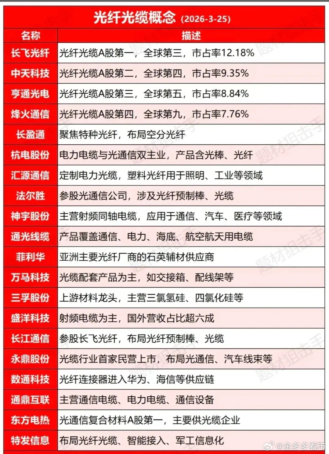 长飞的表现会是整个板块的风向标,它的趋势性是最大看点,只要它能稳住趋势,对于光纤整体的持续性会有很大带动作用,所以它是光纤方向的绝对中军,隔日早盘的表现对光纤的影响会很大,只要它能维持住不大幅下杀,整个光纤前排就比较值得接力,反之,一旦它开盘有明显负反馈,整个光纤方向就是大分歧预期!