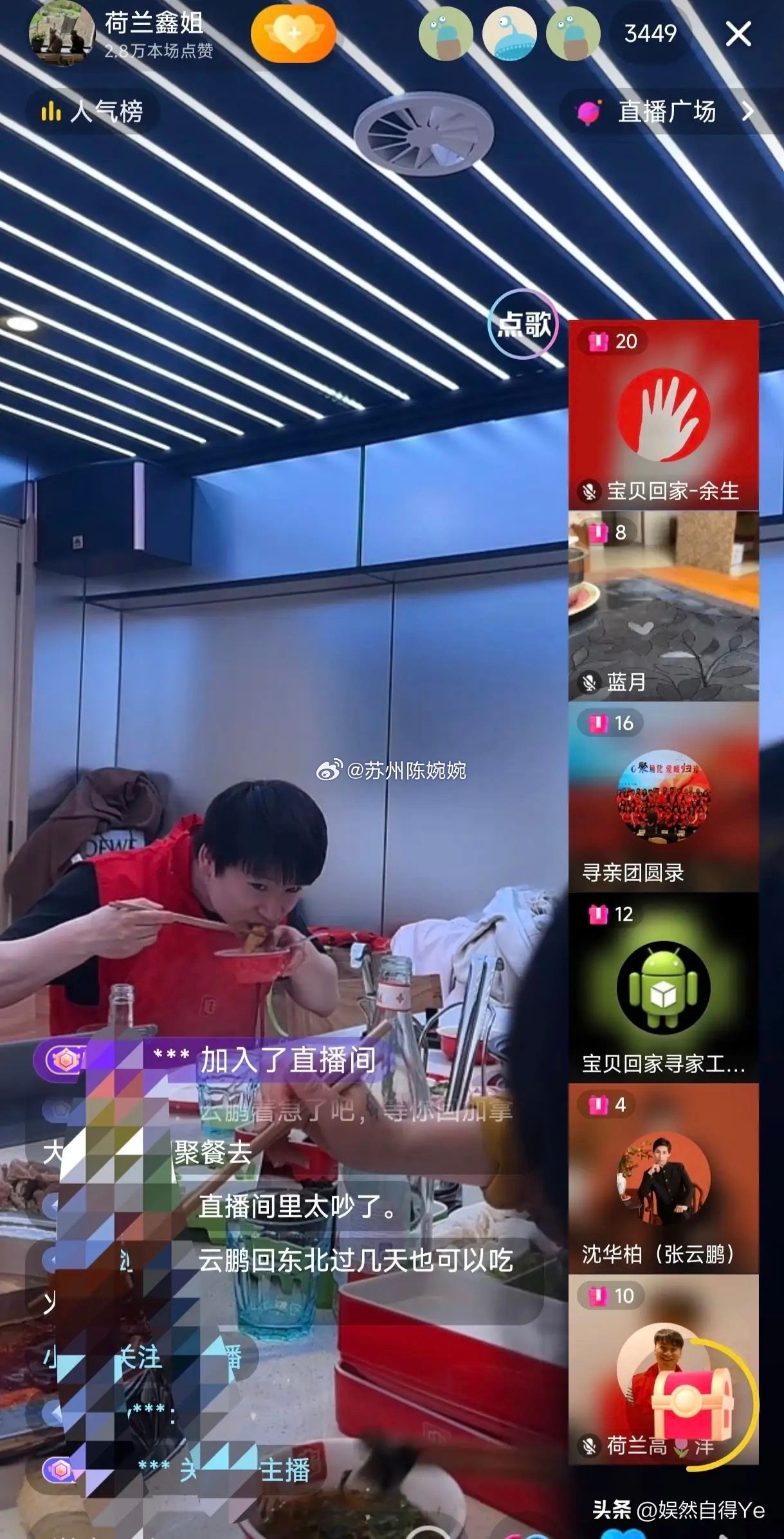 大家在这个直播间大多是想看高洋,所以镜头就是一直对着高洋,还有也想听云鹏说话!所以鑫姐关闭礼物打赏功能格局真大!