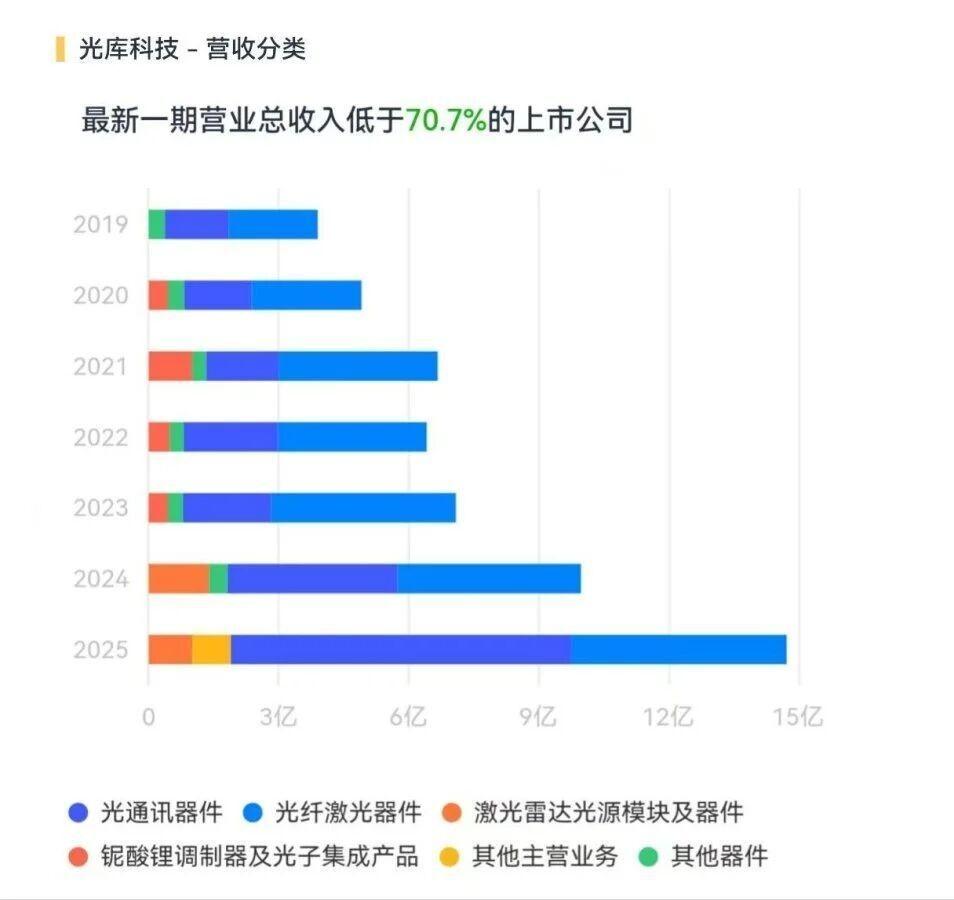 利润连跌三年后,光库科技2025年净利润飙升164%。 你以为是AI风口吹起来的。 其实,是它自己把墙砌到了别人够不着的高度。 传统光纤激光器件业务,毛利率从高位一路下滑了16个百分点。眼看着自己最拿手、最赚钱的老本行,价格战打到头破血流,越来越不值钱。 这时候怎么办? 多数公司会继续降本,在红海里卷到死。 但光库科技干了件不一样的事:研发费率常年保持在10%以上。2025年砸了1.6亿搞研发。然后,花1700万美元收购武汉捷普。 收购时他们想什么? 说白了,就是必须把技术“能做”,用最快的速度变成“能大批量做”。 结果呢? 薄膜铌酸锂调制器,这个打破海外垄断的玩意儿,批量交付了。进了中际旭创、Cisco这些全球头部客户的供应链。 光通讯器件营收7.86亿,直接翻倍。 占比首次超过了传统业务。 这不就是最好的答案吗? 最大的风险不是你不够强,而是你最强的本事,突然不值钱了。 看着老业务毛利率下滑的同时,新业务营收翻倍反超。这种滋味很复杂。一边是过去在坍塌,一边是未来在生长。 一家公司没在价格内卷里躺平,而是咬着牙把钱投进研发和制造能力上。最终在一个看似狭窄的赛道里,把产品送到了全球顶尖客户手里。 这给普通人什么启发? 抬头看路的时间,和低头打磨手艺的时间,一样重要。 你赖以生存的“专业”,离“过时”还有几年?