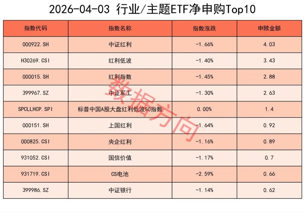 上证50指数(3.28亿)、上证指数(3.12亿)、科创100指数(0.34亿)、上证180指数(0.02亿),分别获小幅净申购。