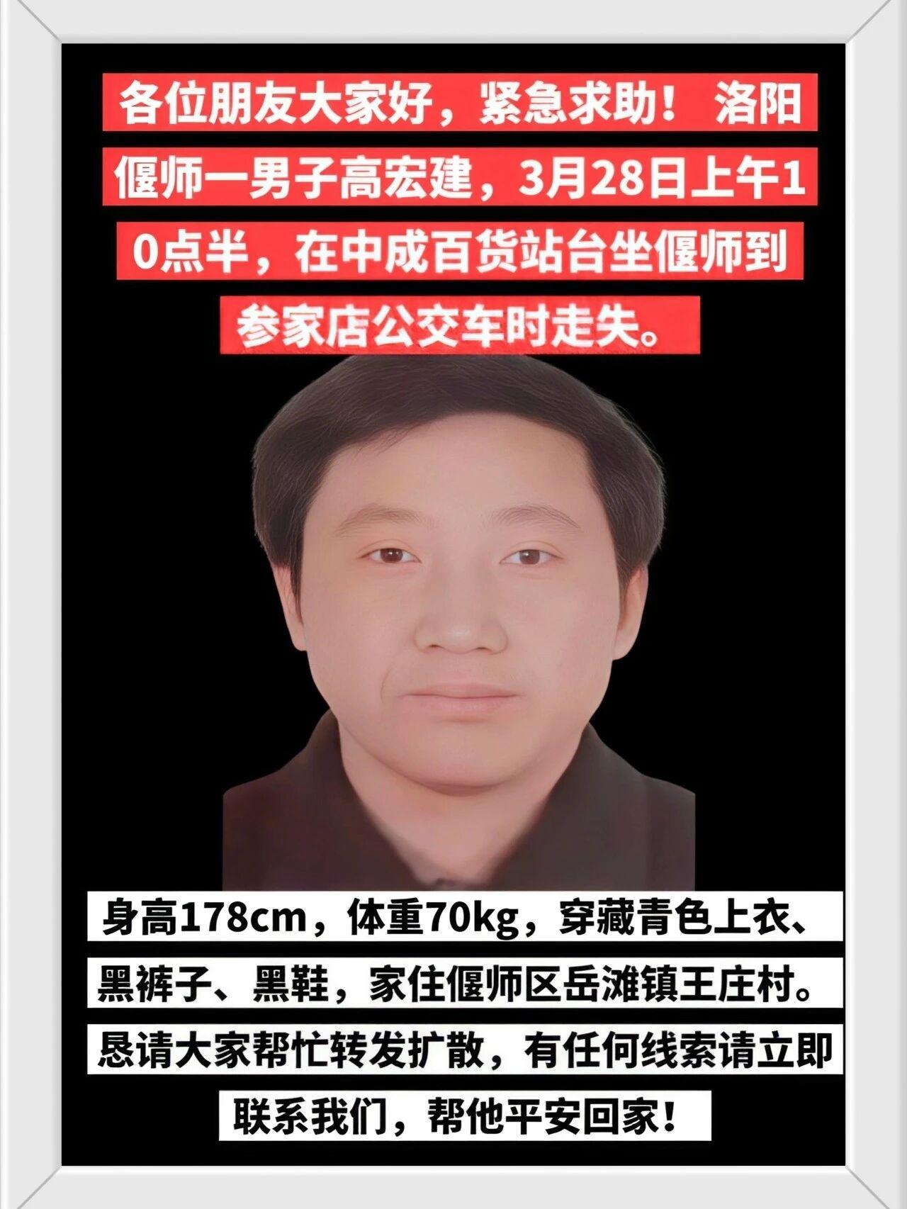 高宏建走失求助 洛阳偃师区寻人 中成百