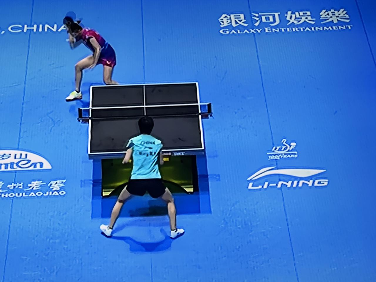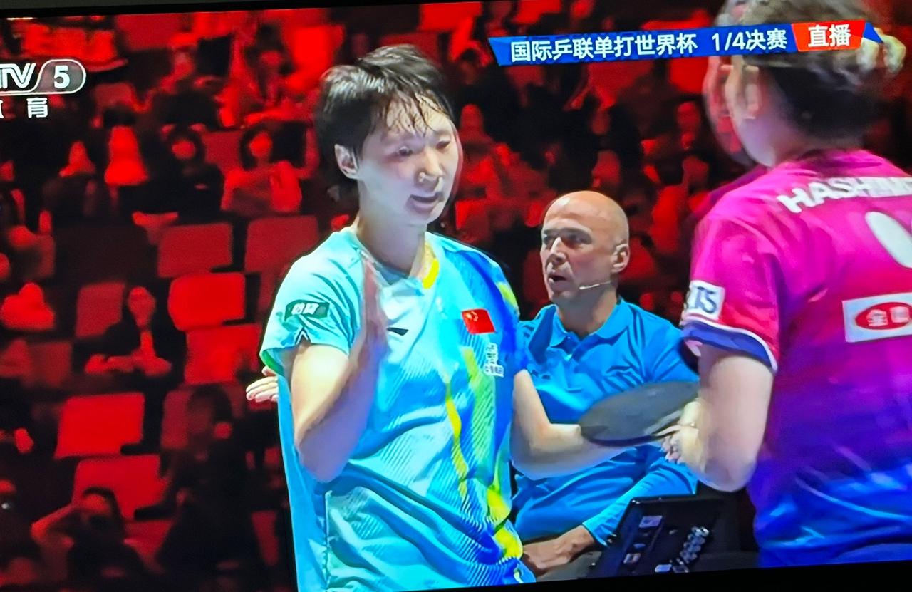 老实说,昨晚观看王蔓昱与桥本帆乃香的四分之一决赛电视直播,看着看着,我都打瞌睡了:王蔓昱跟削球手桥本帆乃香打,太费时间了!开始的时候,他们的对打,每打一个球就得十几个回合,有一个球竟然打了30多个回合。王蔓昱的扣杀,桥本帆乃香似乎都接得起,这个削球手就像一个打不死的光头强! 这种费时间的多回合对打,连比赛规则的看不下去了,好在后来的12板内决胜负的裁决方法有效地缩减了他们的拉锯战,最终,王蔓昱胜利晋级半决赛。 此刻的王蔓昱,头发早已湿透,中途换了球衣还是被汗水湿透了。看着她那瘦削的身形,真的心疼她!