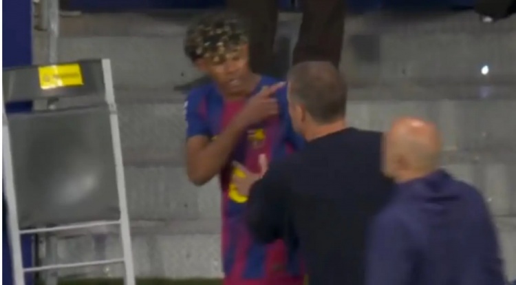尽管巴萨最终取胜,但亚马尔情绪不佳,他并没有庆祝莱万的制胜进球,这位小将带着怒气离场,而库巴西试图暗安抚亚马尔。