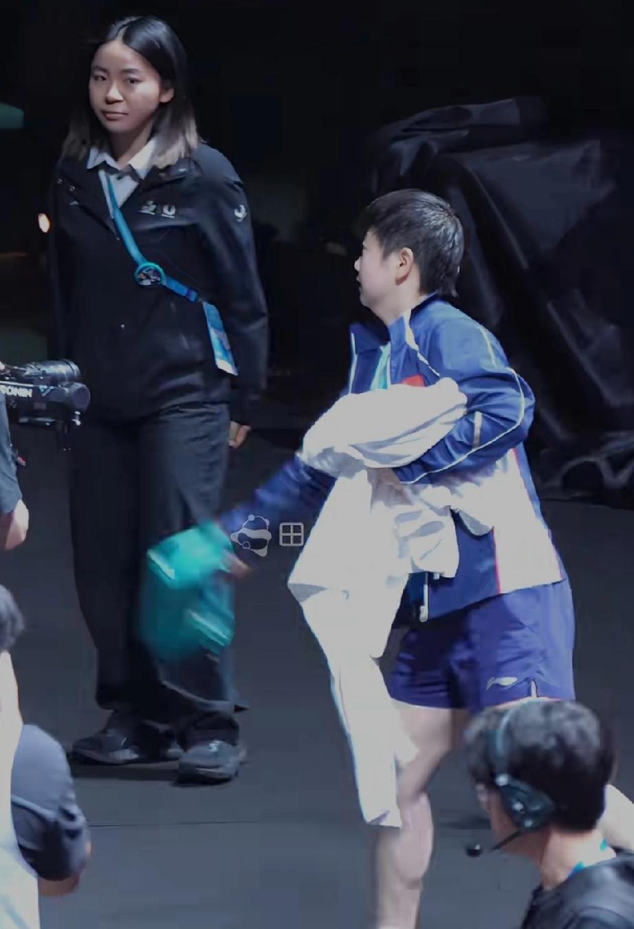 莎莎和高达比赛结束后发现一个有趣的现象。莎莎穿着外套拿着绿色大毛巾,大跨步朝前走。不远处的外国工作人员拿着手机一直录像,一刻也不敢停。直到莎莎把叠好的毛巾扔到观众席,她才分心看看山呼海啸的观众。 这个姑娘真喜欢莎莎,莎莎的群众基础国内国外都有。她的录像行为太让人羡慕了,距离莎莎那么近。想想如果不是在比赛现场,估计她能跑上去找莎莎签名,大家说是不是。