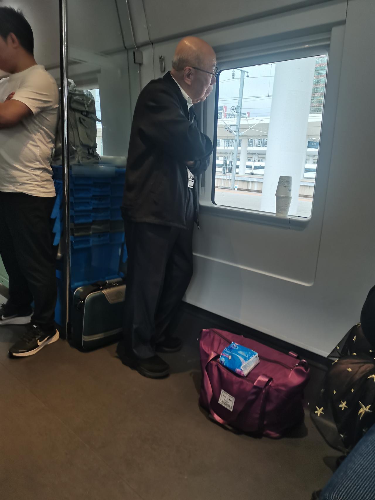 老派香港人!在清明的高铁上,碰到一位赴老家祭祖的老大爷,他没有座位,所以一直站着