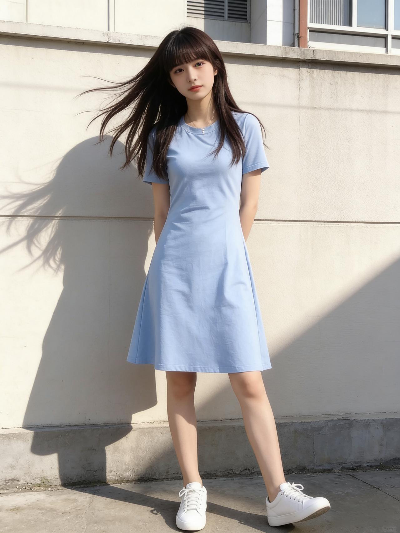 夏日的元气,藏在一袭清新蓝色连衣裙里。天蓝色的棉质面料,像被阳光吻过的天空,V领设计露出纤细锁骨,袖口的泡泡袖添了几分甜美,裙摆自然垂落,走动时如微风拂过湖面,漾起层层灵动。搭配一双白色帆布鞋,鞋侧的小雏菊刺绣与裙摆的碎花暗纹呼应,再背一只草编小包,瞬间点亮整体造型。时尚穿搭 技巧分享 如何穿出精致的少女感?