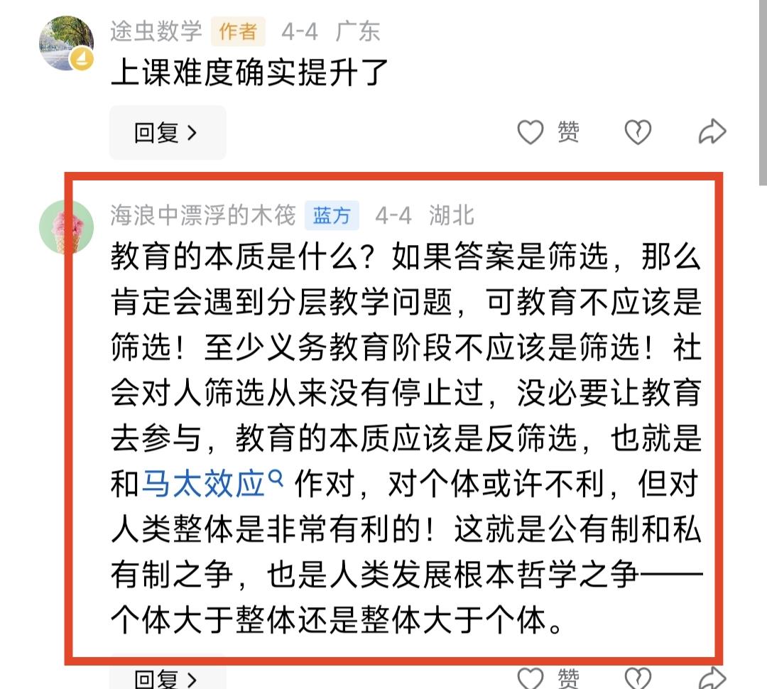 教育部再次严令重申义务教育阶段中小学严禁分快慢班,重点班普通班,很多家长心慌了,自己的孩子是学霸,到班上吃不饱怎么办,会不会被拖垮了。 家长担心有道理,但关键是孩子的学习能力和适应能力。我们学校多年前就没有分快慢班了,班级学生基础相差很大。所以不少学霸在老师讲简单问题的时候,就自己刷题,不懂的下课后请教老师,尽管教室有些喧闹,但不少学霸却能静下心来,此为慎独,不浮躁,考入顶尖高中的孩子都具有这个特点。 当然,这个效果可能比不上真正的重点班,但在均衡分班的大趋势下,让孩子具有这种能力也是很重要的。 我担心的是,这个禁令能能否在每所学校都得到强有力的执行,如果没所学校都按照指令执行,那么能保证相对的公平。其实,中小学严禁分重点班普通班,在多年前都已经发布禁令,但其实基本没有得到执行,大部分学校还是以各种方式分快慢班。地方教育部门其实也是睁只眼闭只眼,因为在中考战场需要成绩。 不分快慢班,不利于因材施教,这是一部分人的观点。分快慢班,容易形成师资分配的不均和权力寻租,义务教育首先追求公平而不是筛选。这是另一部分人的观点。 相关禁令已经下来,这一次我估计是来真的,所以都做好准备吧。教育