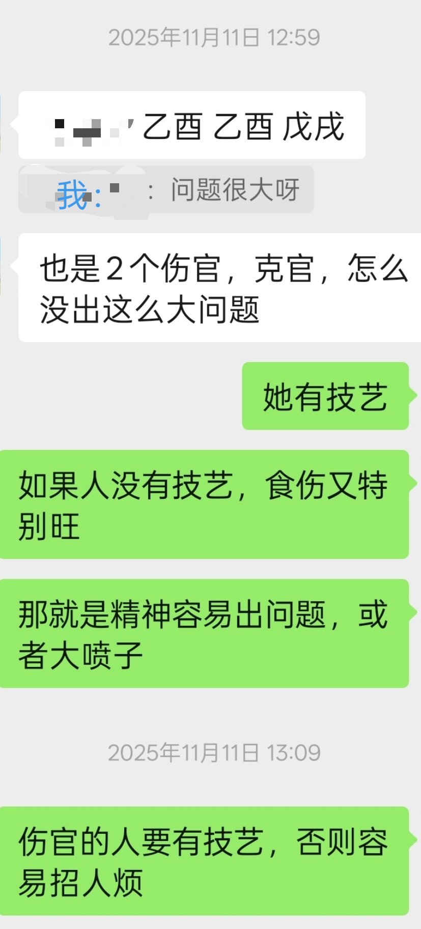 当时朋友就提到了,说,某某也是这类命局,怎么她没出那么大的问题。我说估计她以技艺去应伤guan,去避免了变成xxx的问题。结果……