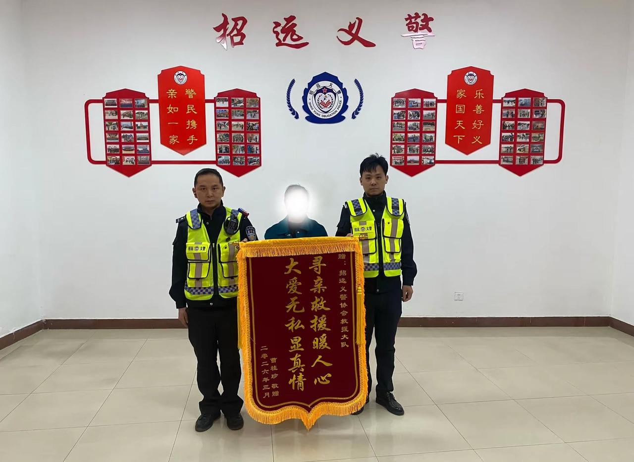 招远义警协会救援大队又得到走失人员家属送来的 一面锦旗。