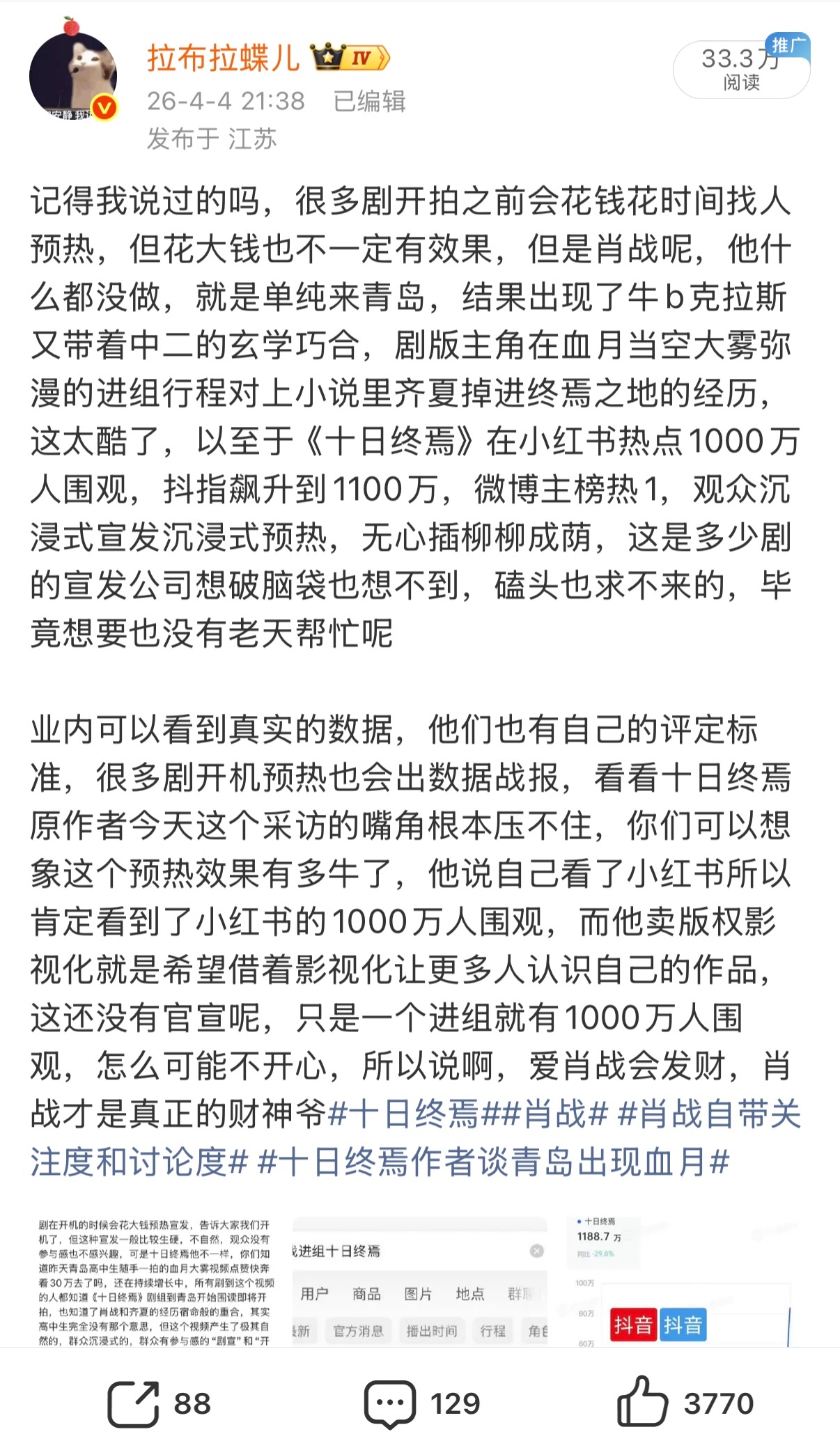 十日终焉作者谈青岛出现血月我看这个热门有下家很嫉妒的样子嘛,但是你们的每一句讨论也给十日终焉开机预热做出贡献了哦 十日终焉