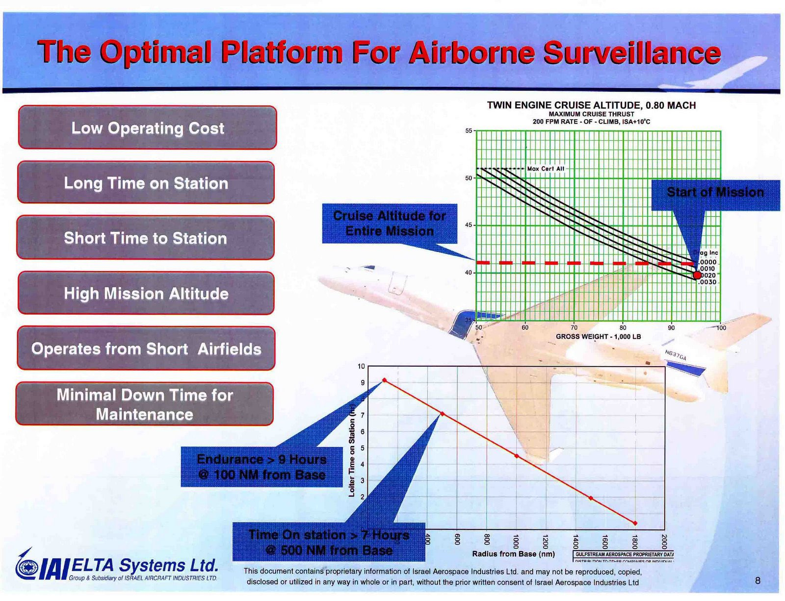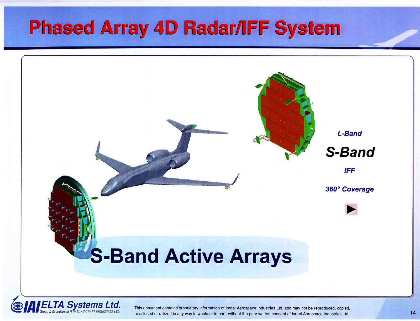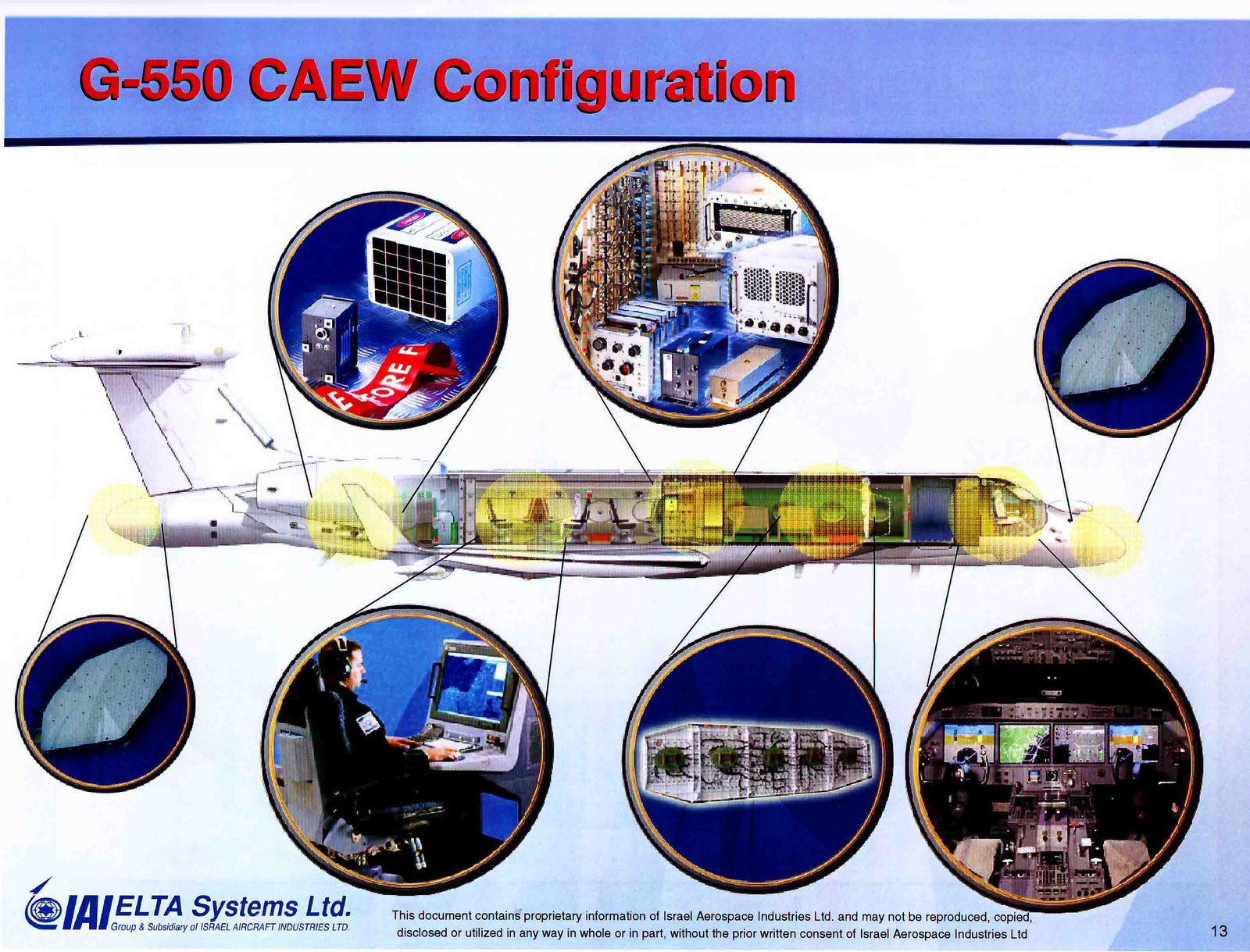 烽火问鼎计划 以色列 IAI/Elta EL/W-2085 (G550 CAEW) 预警机,基于湾流 G550 远程商务喷气式公务机,采用了EL/W-2085 S/L双波段 AESA 雷达提供360°覆盖。机身侧面有大型L波段共形天线,没有传统的天线罩,整体的气动性更好,对于飞机的性能影响较小。