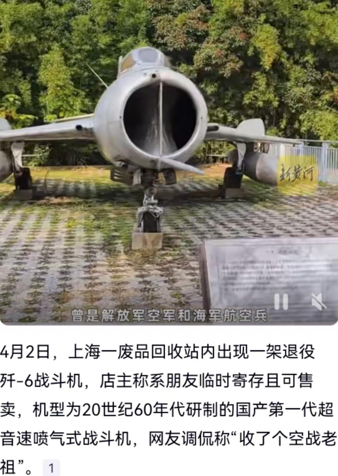 谁能料到,在上海一处寻常的废品回收站里,静静躺着的竟是一架退役的歼-6战斗机。4月2日,这个画面在网络上迅速发酵,引来百万人围观。废铁堆旁的这抹军绿,带着浓厚的时代气息,硬生生把日常的废品收购站变成了一个充满戏剧性的露天航空博物馆。 站在飞机旁的店主面对镜头十分坦然,直言这架飞机是朋友临时寄存的,强调是“真家伙”,并且明码标价可以售卖。这句话一出,军迷圈里瞬间炸开了锅,有人苦笑调侃这是“收了个空战老祖”,更多人则感到一阵揪心。 要理解这种复杂的心情,必须得看清这架飞机的真实分量。查一下公开的履历就能明白,这绝不是一般的工业废铁。这架采用头部进气、后掠翼正常式布局的单座双发战机,是20世纪60年代由沈阳飞机制造工业公司敲打出来的。它的原型是前苏联的米格-19。作为中国第一种超音速战斗机,歼-6尺寸小、重量轻、推重比大、机动性极其出色,生来就是为近距空战格斗量身定制的。 从1958年初开始研制,到1960年投入批生产,再到1964年首批交付中国空军使用,歼-6开启了一段属于它的传奇岁月。它是解放军空军和海军航空兵装备数量最多、服役时间最长、战果最辉煌的国产第一代喷气式战斗机。截至1983年停产,总共生产了5205架。 这五千多架飞机不是停在机库里的模型,而是真刀真枪在国际战场上刷过存在感的。1965年,歼-6参与印巴战争,协助巴基斯坦空军击落12架印度军机;1972年5月到7月期间,它在越南参加8次空战,击落美机7架。这些具体的数据和战绩,是刻在机体内部的骨血。 时间拨到2010年6月12日,歼-6战斗机正式退出中国空军装备序列。按照公开的后续处理方式,其中一部分退役后被改装为无人机,继续发挥余热;另一部分则进入各大航空院校、博物馆、爱国主义教育基地,甚至作为公园雕塑,承担起国防教育的职能。这才是公众认知中一架功勋战机的标准归宿。 现在,这样一架承载着厚重历史的老兵,却出现在了废品站的泥地里,甚至被打上了“可售卖”的标签。这种强烈的反差,恰恰是引发舆论震荡的核心点。很多人觉得不可思议,是因为这打破了常规的退役装备流转逻辑。 从客观理性的角度来看,这件事可能只是一个私人之间违规流转的特殊个案。朋友寄存也好,店主想要变卖也罢,都暴露出一个现实问题:退役大型军事装备在脱离体制管理后,如果缺乏明确的私人收藏界限和监管追踪,很容易陷入流转的灰色地带。普通人眼中它可能是一堆昂贵的废铁,但在国防资产管理的框架下,哪怕是退役装备,其流转、拆解、报废都有着严格的法定程序。店主口中的“能卖”,在法律层面上其实是一个极其模糊且危险的概念。 这件事给所有关注军事、热衷于收藏的人提了个醒。退役战机绝对不是普通商品。哪怕它已经失去了飞行能力,被拆解了核心机密部件,它所代表的军工型号特征、历史痕迹依然属于国家国防资产的延伸。私人买卖这类装备,稍有不慎就会触碰法律红线。对于真正有情怀的军迷来说,看到心爱的机型落魄至此感到心碎,不如把这种情绪转化为对退役装备去向的关注。监督这些“空战老祖”去到该去的地方,比如正规的展览馆或者教育机构,远比看着它在废品站里论斤称两要有意义得多。 废品站里的这架歼-6,像是一面镜子,照出了民间军事热情与装备退役管理之间存在的认知信息差。它静静地躺在那里,身上的铆钉和褪色的涂装还在诉说着60年代的超音速故事,但属于它的真正位置,绝不应该是在被标价出售的废铁堆里。 以上内容仅供参考和借鉴