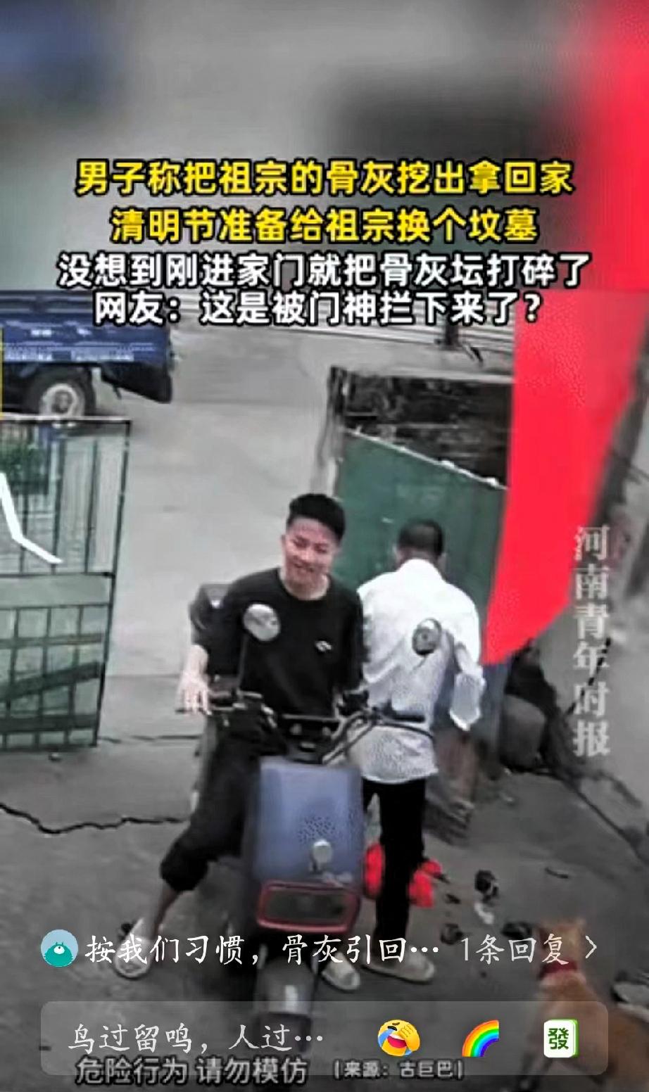 闯大祸了!广东,一男子把祖宗的骨灰挖出来,准备在清明节给祖宗换个坟墓,以此表达对先人的缅怀与敬意。他将骨灰取出后携带回家,准备后续安排安葬事宜。刚进家门时,因一时不慎,骨灰坛不慎滑落摔碎,骨灰与器皿碎片散落在地。 男子见状十分慌乱,内心充满自责,一时不知如何处理。 此事被分享到网上后,不少网友给出了看法,有人认为这只是意外,不必过度紧张,也有人建议尽快请教家中长辈,依照当地风俗妥善处理,尽量弥补。 清明祭祖、迁坟安葬,在传统习俗中都是比较严肃的事情,寄托着后人对先人的思念。男子的初衷是尽孝,本意值得肯定,只是在过程中疏忽大意,才出现了这样的状况。 这类事情本身并无吉凶之说,更多是心理上的不安与愧疚。意外难以完全避免,重要的是冷静处理,用合适的方式安置好先人骨灰,做到心安敬重。 这件事也提醒大家,在处理祭祀、迁坟等相关事务时,尽量细致稳妥,提前做好准备,避免因疏忽造成不必要的麻烦和心理负担。 孝心贵在真诚,不必因一次意外过度苛责自己。遵循习俗、妥善收尾,才是对先人更合适的告慰。