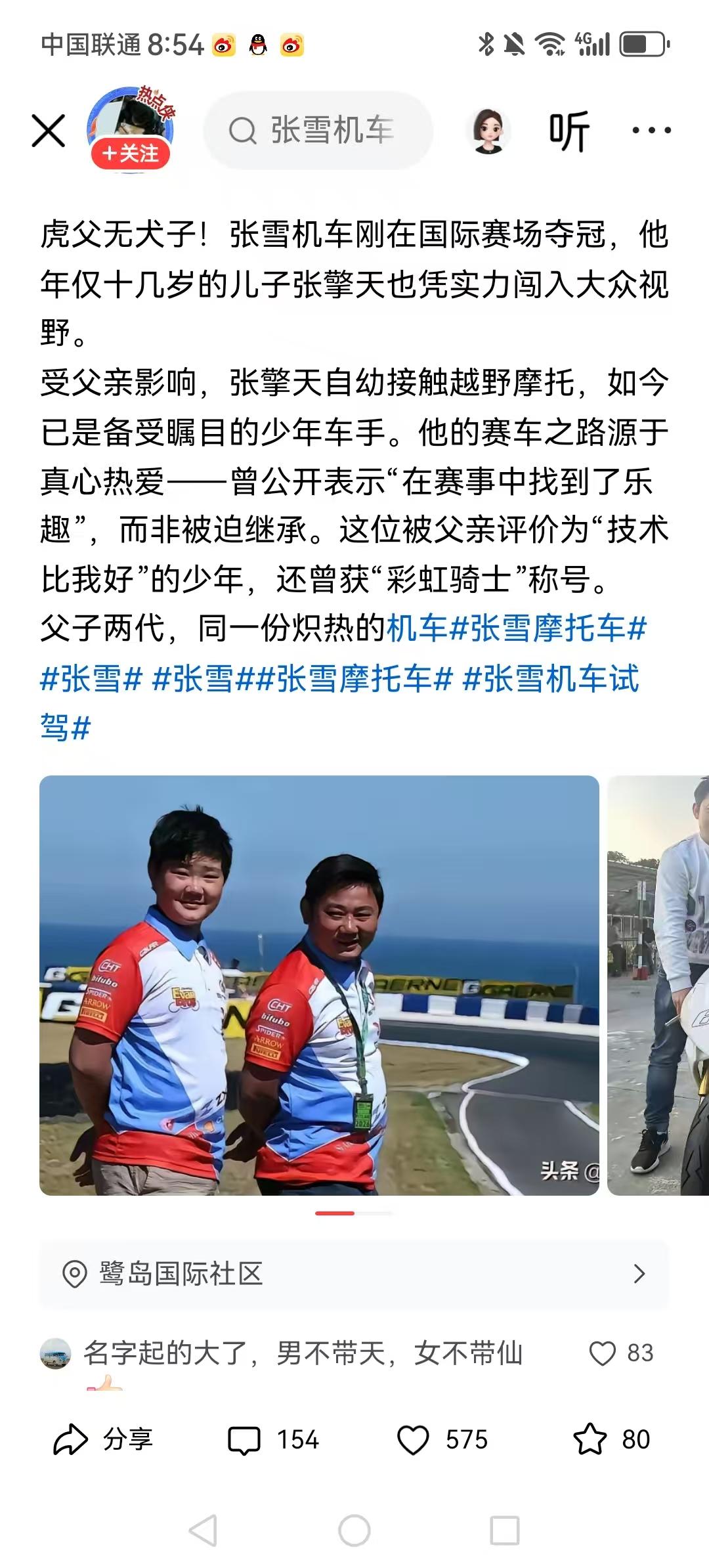 虎父无犬子!建议老张给儿子改个名字,把天拿掉,叫张擎更好,更像一个赛车手的名字。 长沙五一路上的三百米双子楼,原名叫擎天广场,建到一半时资金链断裂,停工几年。后来老板把顶目更名为敬天广场,之后建设顺风顺水,如今已招商开业。 名字改的太大了,但愿人家是真神能抗得住。 建议将儿子的名字改一改为好,不要起的太高了。不是玄学。叫张平似乎更好。 这绝对是亲儿子,简直就是一个模子刻出来的。男不叫天,女不叫仙,张雪不懂这些。