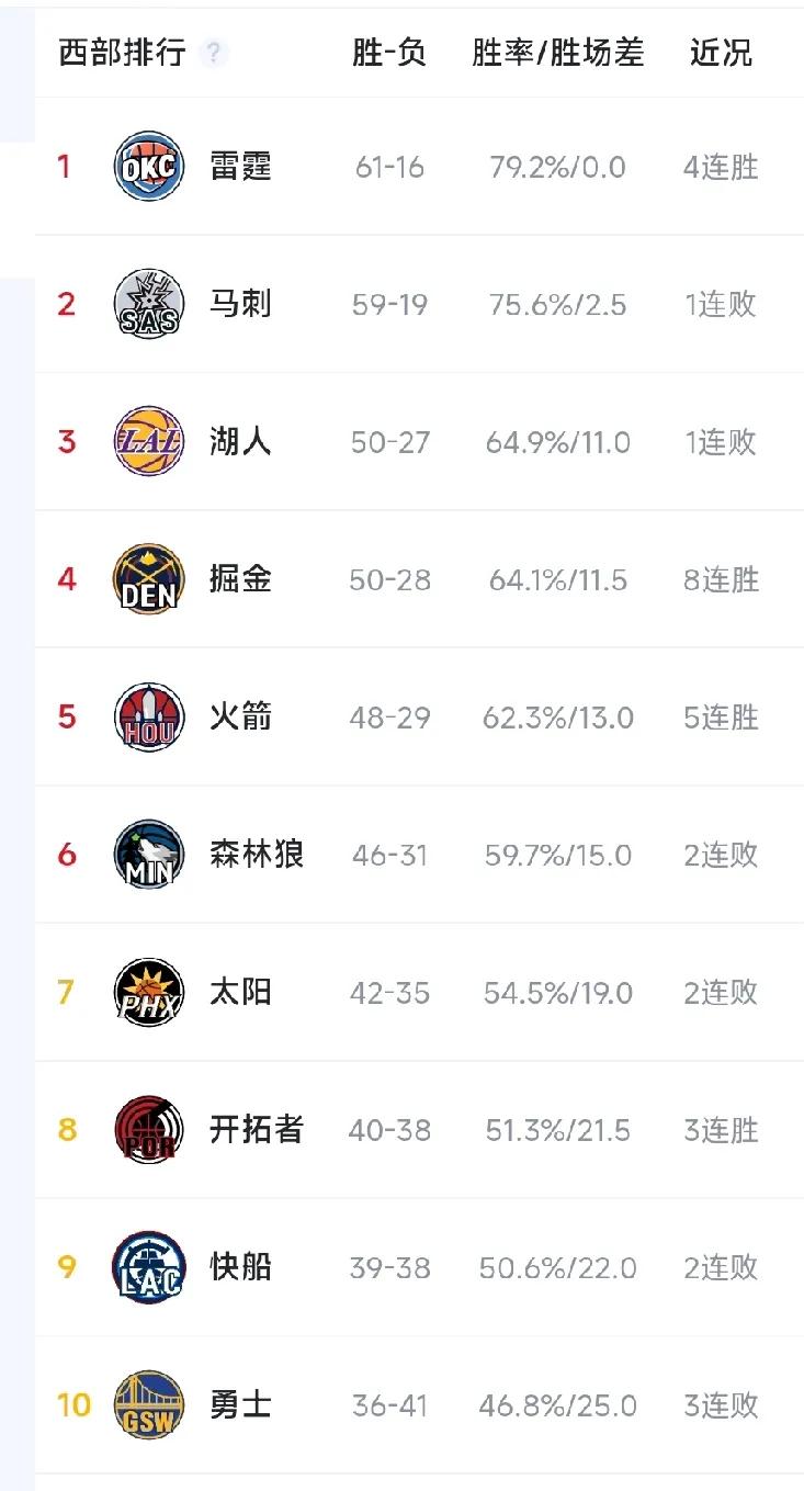 火记:火箭掘金森林狼都想打湖人。现在来看火箭打湖人的机会最大,掘金肯定没机会打湖人了,毕竟湖人掉到西部第六这有点难啊,但是湖人掉到西部第四或者第五那是大概率的事情,而森林狼想爬到前五也很难,毕竟落后湖人4个胜场,落后火箭2个胜场!