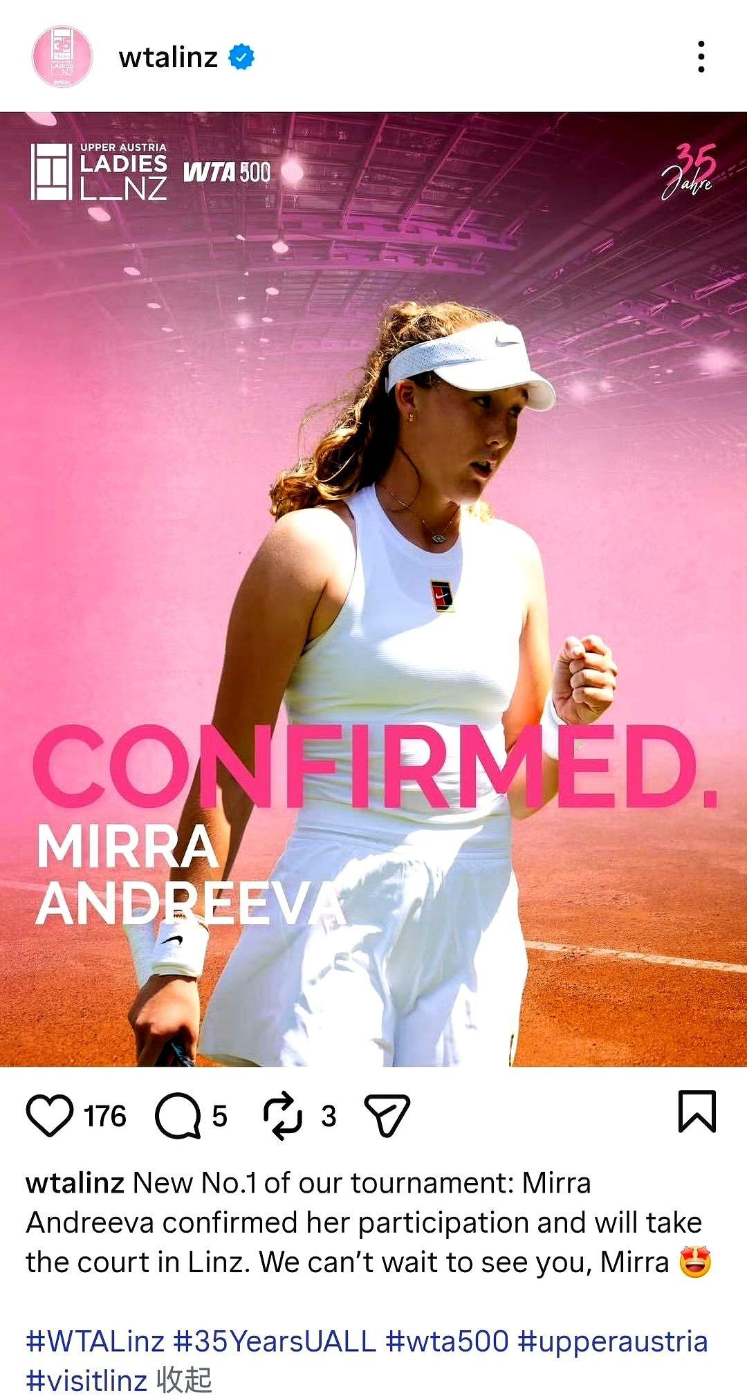 天才少女安德列娃急了! 温网后比赛打得少,状态肉眼可见地下滑。为了保住世界前十,她选择了一个聪明的办法:多打比赛,疯狂抢分。 这不,她刚官宣以头号种子身份空降林茨500赛。这站比赛很特别,第一次改成室内红土,冠军能拿470分,简直是法网前的黄金热身场。 赛事总奖金超过120万美元,前四号种子还直接进第二轮,待遇拉满。对手也不弱,卫冕冠军亚历山德罗娃、奥斯塔彭科都来了。 看样子,红土赛季有好戏看了。