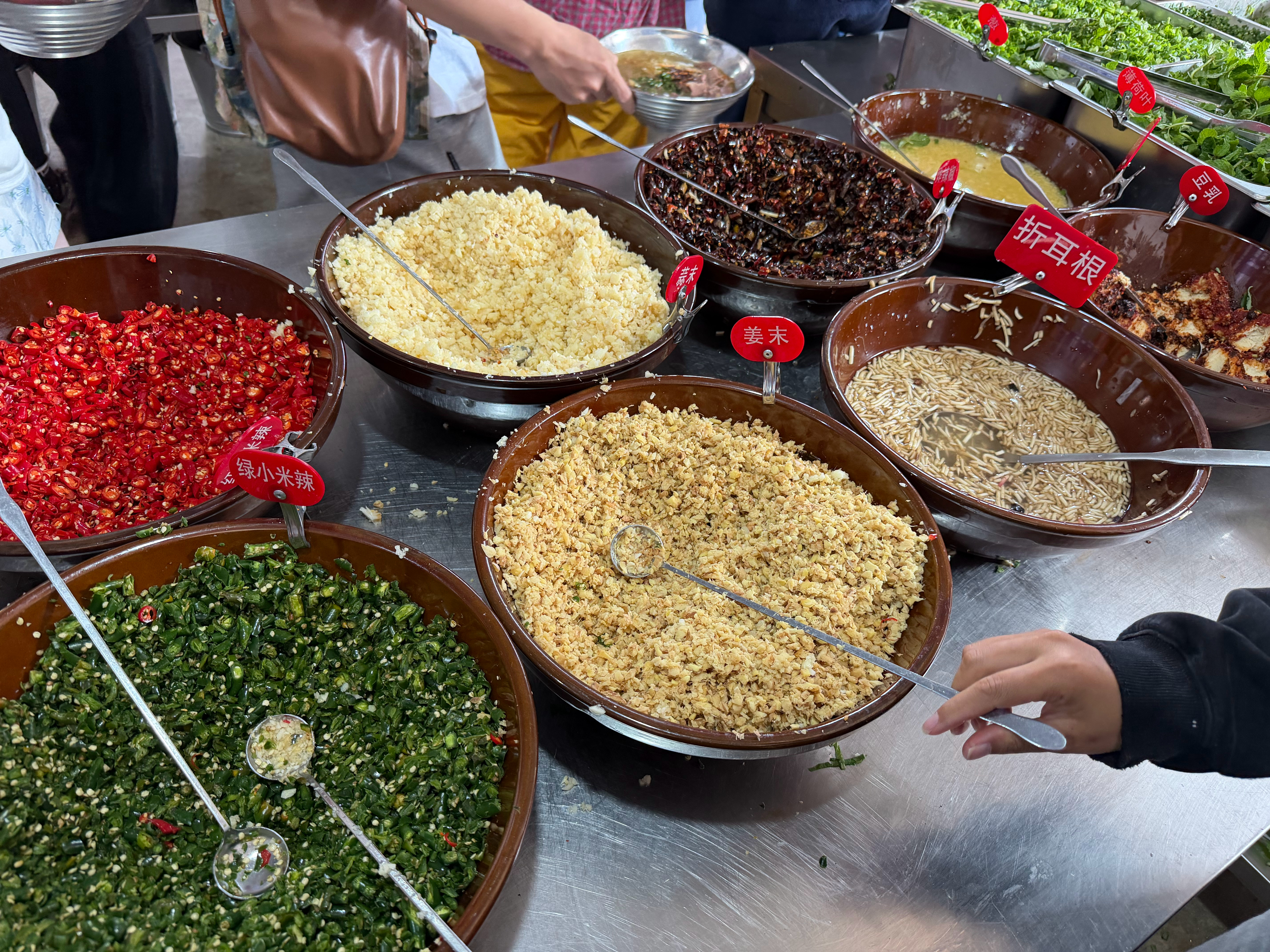 银家早点在米线这方面还是太权威了巨多的调料,我一时间不知道加哪个。但是我知道全加了肯定不一定好吃。看了看隔壁的调料都堆成小山了。要了一个加吊龙的。非常鲜好评 芒市·银家早点