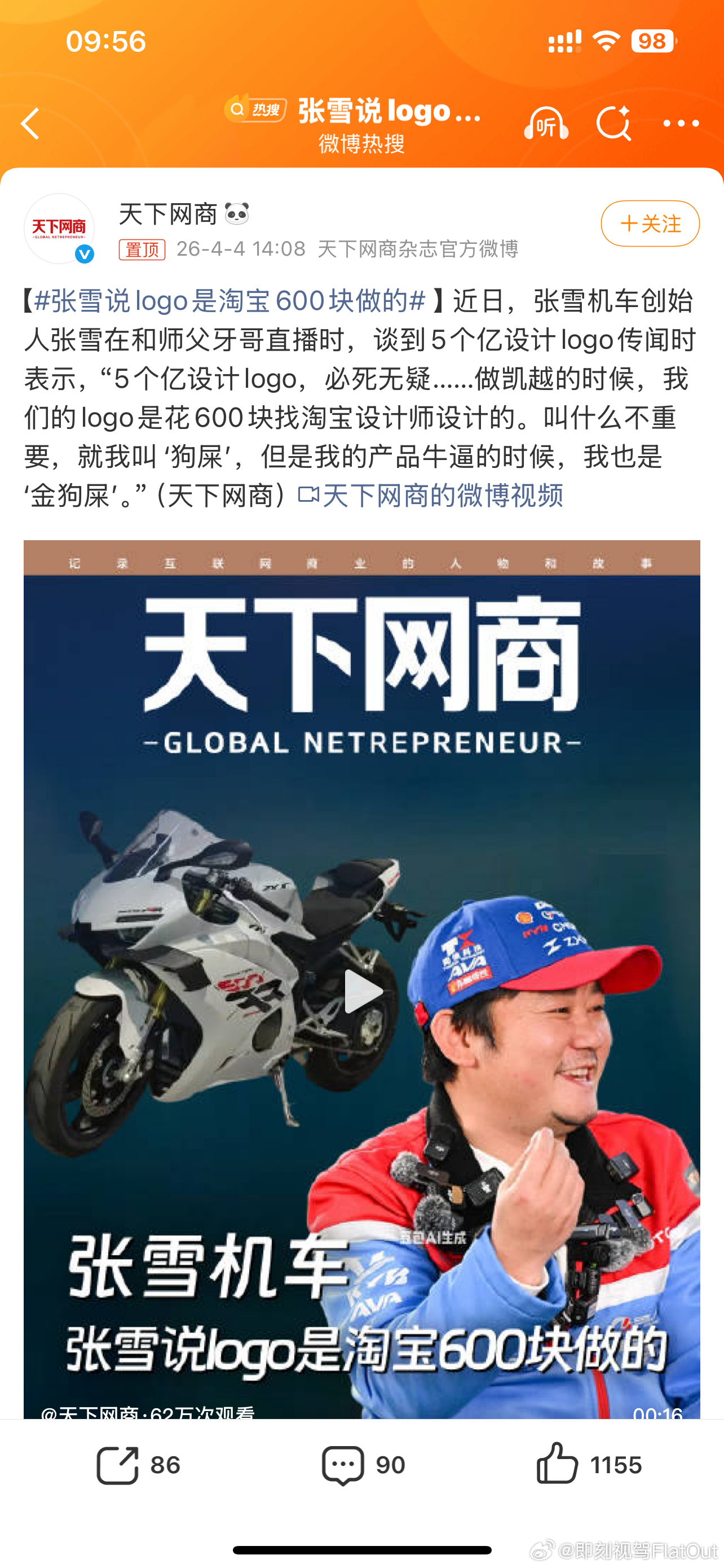 张雪说logo是淘宝600块做的大家喜欢张雪是因为他够真这种真是朴实接地气的lo