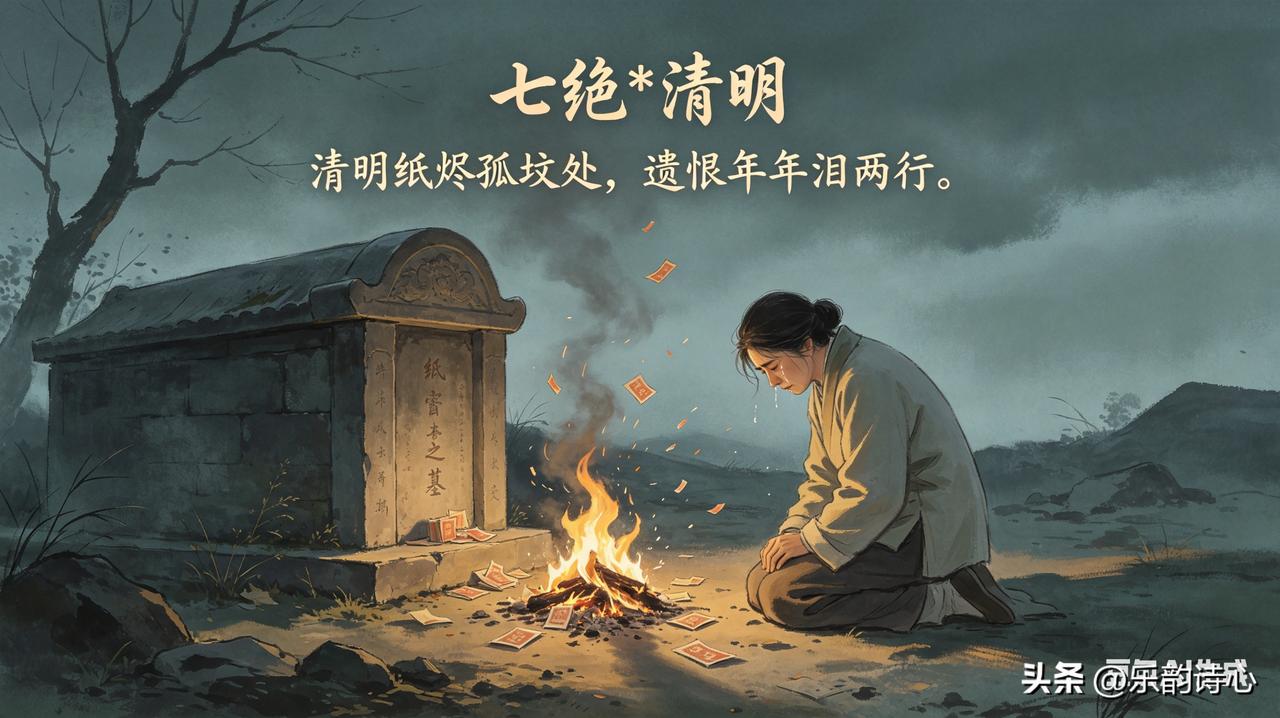 这首诗从天人永隔的悲怆落笔,追思逝者生前的模样与辛劳:掌心厚茧是日夜操劳的见证,尘灰素面藏着为家付出的痕迹。曾亲手缝制衣物、反复叮嘱的细节,都成为清明坟前的锥心回忆。化纸燃烟时,唯有年年洒泪,诉说难平的遗憾。