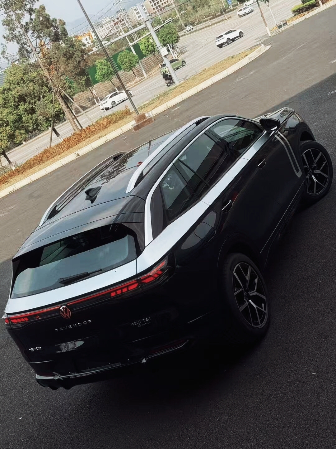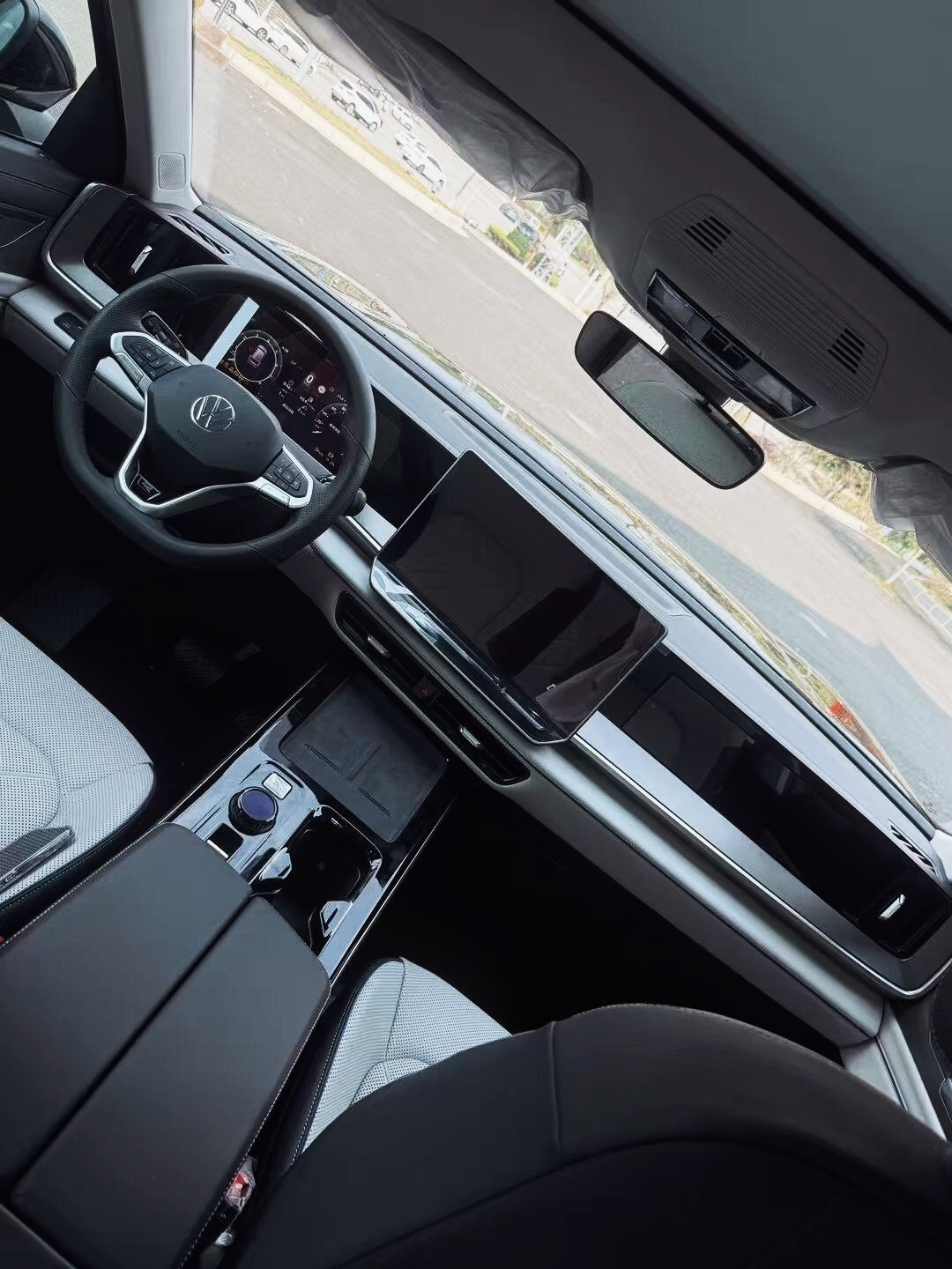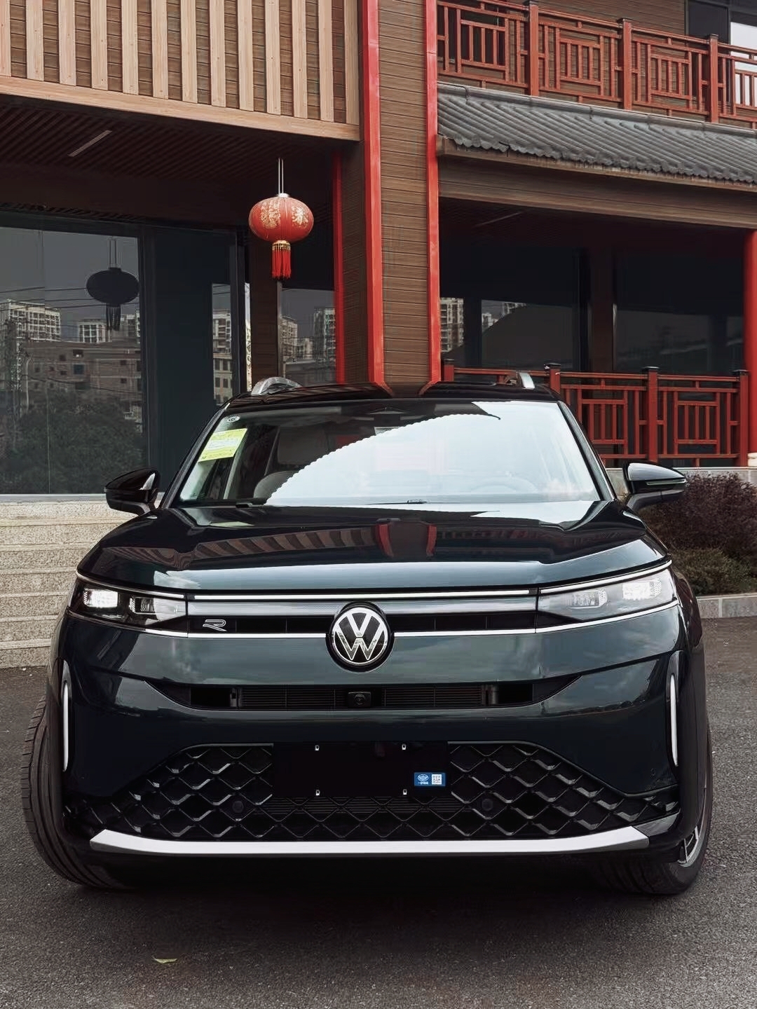 周末抽空去4S店看了全新揽巡,作为家用SUV的潜在买家,第一眼就被它的气场拿捏了。新车尺寸全面升级,车长突破5米达到5007mm,宽2015mm、高1778mm,轴距2980mm,往展厅一停就显得格外大气,比同级很多车型都更有存在感。 车身采用肌肉雕刻造型设计,线条硬朗又不失流畅感。短前后悬、长引擎盖的设计让侧面比例特别协调,视觉重心很稳,完全没有臃肿感。R-Line版本的保险杠设计很加分,收敛式格栅搭配垂直导流槽,光泽与哑光双材质拼接,再加上银色底盘护板,运动感和豪华感都很到位。 IQ.Light智能矩阵大灯是外观的点睛之笔,灯组造型锐利,点亮后辨识度拉满。销售介绍这套大灯有自适应远近光和高速近光模式,夜间跑高速时能自动优化照明范围,既不晃对面车辆,又能最大化视野,对经常跑长途的家庭来说,安全性提升很实在。整体外观兼顾了大气、精致与实用性,很符合家用SUV的审美。