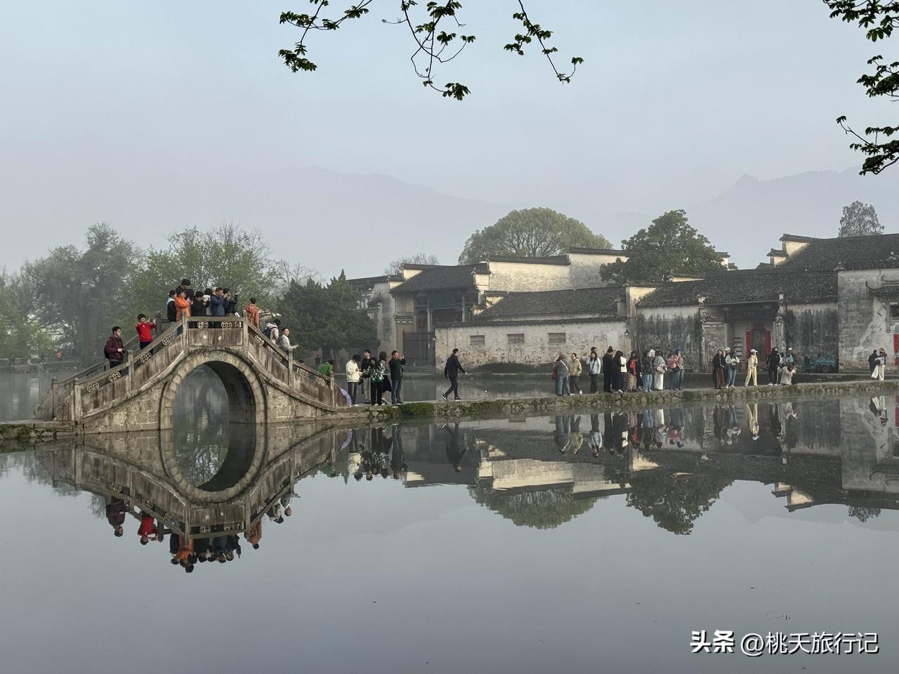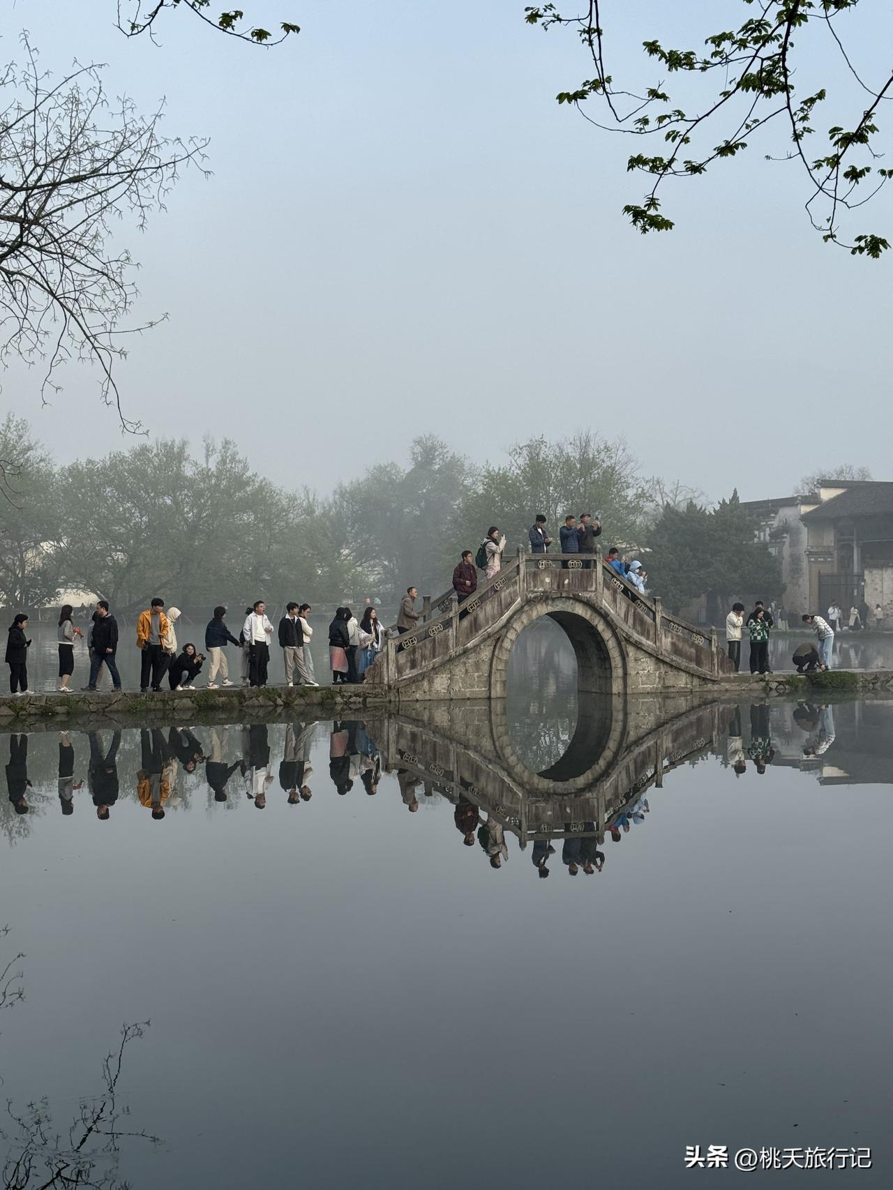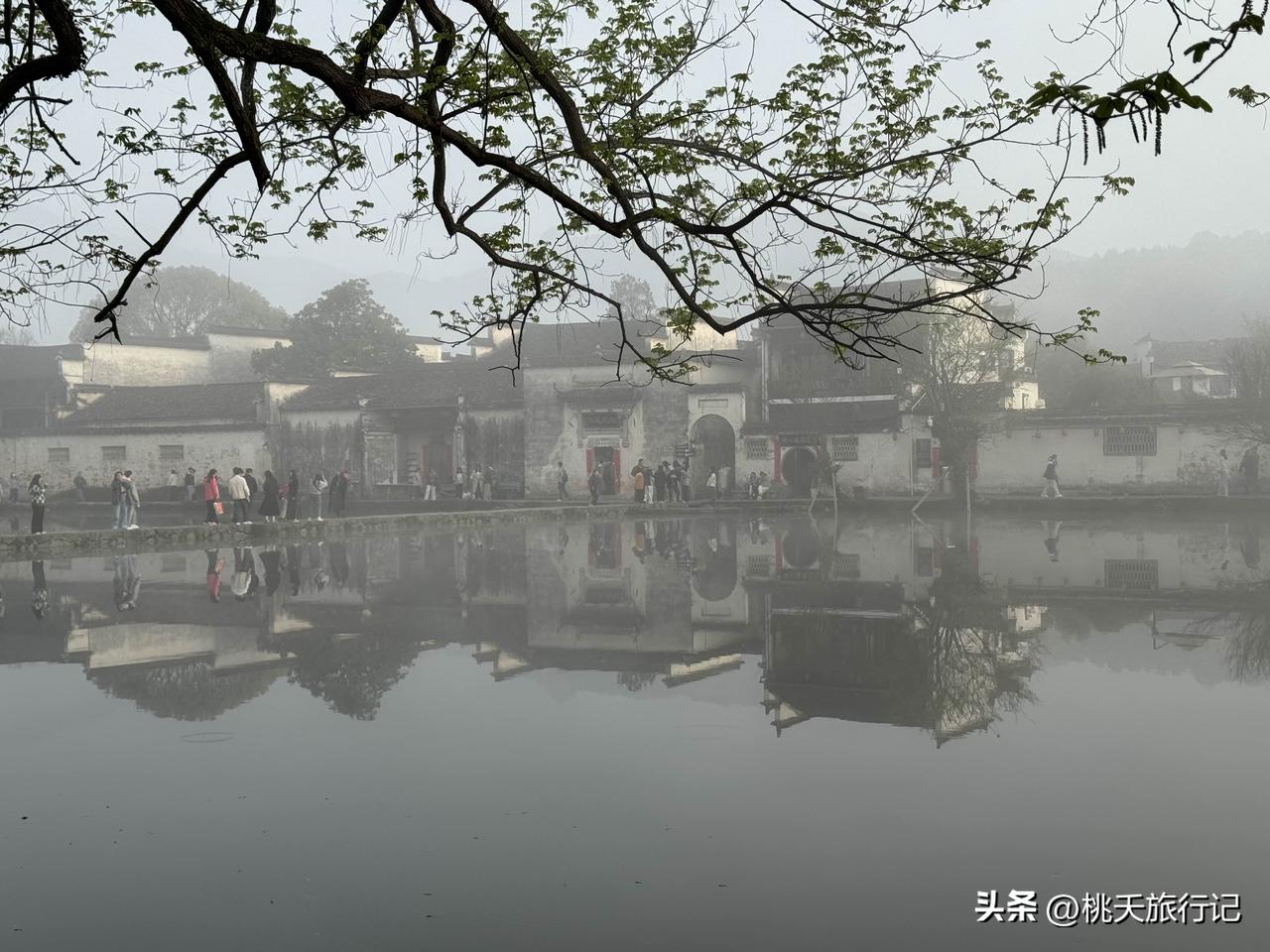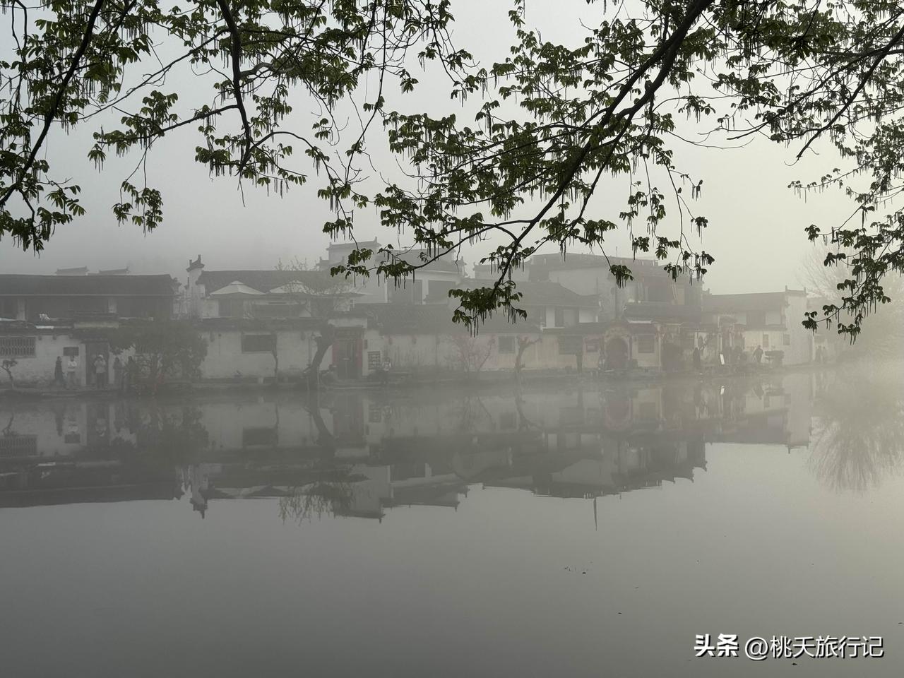 早晨7点的安徽宏村,雾气朦胧的感觉,还真像一幅流动的水墨画,网友,这景色比起下午