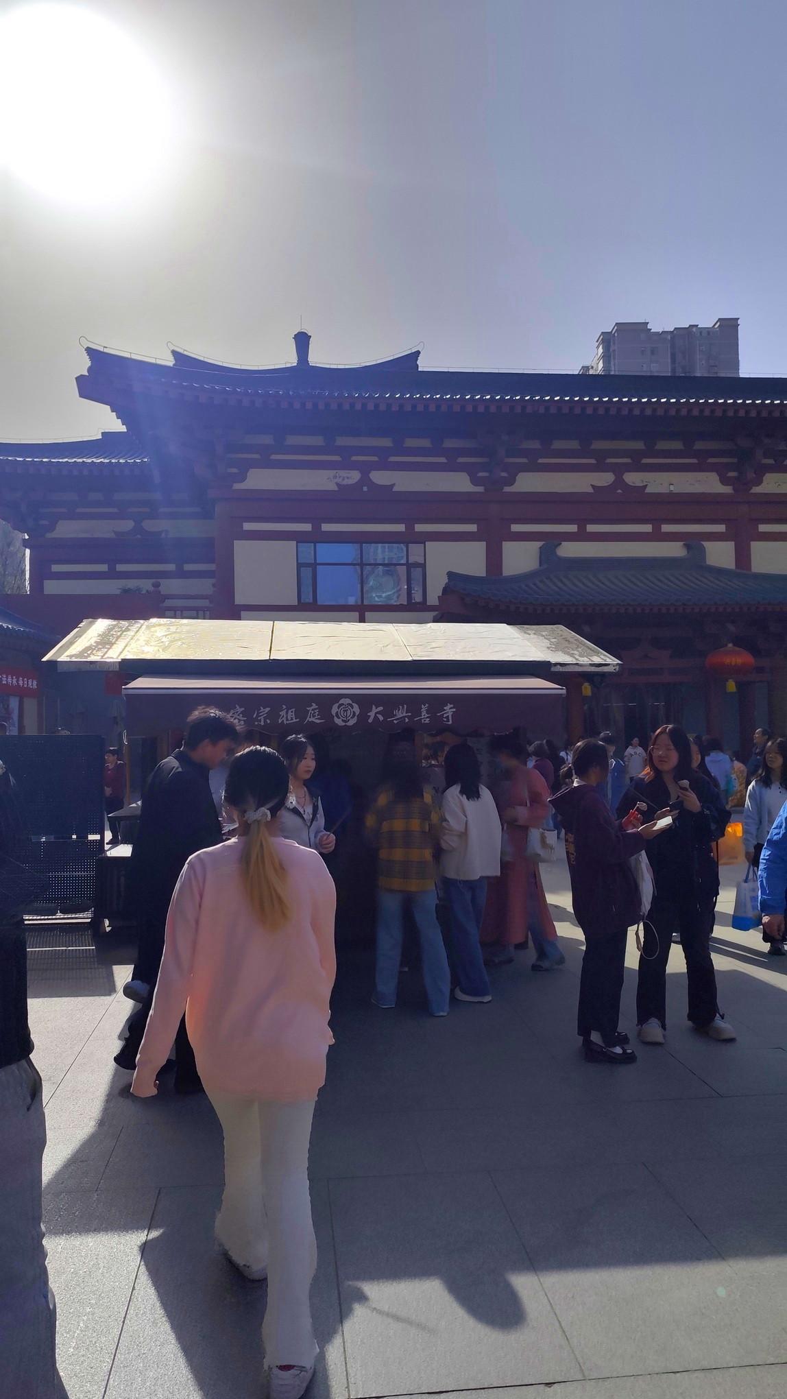 清明小长假的大兴善寺,直接被人流挤成了“兵马俑”现场!之前经常去这儿转,可以图个清静。没想到这个假期,偌大的寺庙从开门就爆满,到下午五点关门,人群像泄洪一样倾泻而出——出门都得排半天队。   说实话有点吓人。院里几乎找不到一块能站定歇脚的地方,想拍张没人头的照片?很难搞定的。不过也难怪。大兴善寺地处小寨闹市,能打卡拍照,能许愿祈福,还能赏花看猫……buff叠满了。   有意思的是,庙里乌泱泱全是年轻人,那些年长的老香客反而不见踪影。看来现在的年轻人逛寺庙,烧香是顺便,拍照撸猫发圈才是正经事。就是这人流量,下次真得工作日请假来了……
