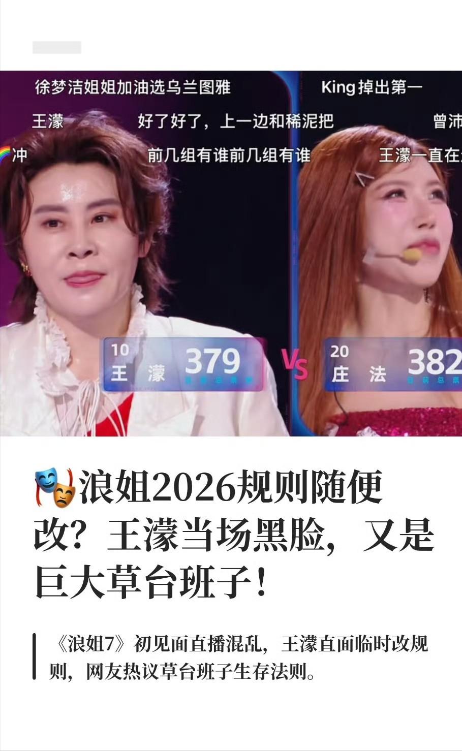 王濛,明显不高兴了! 大屏幕之上,那数字如寒星般,带着彻骨的冰冷感,有节奏地跳动着,似在诉说着某种无情的讯息。 4月3日深夜,《乘风2026》的演播厅里,王濛盯着那两个低于400的数字,嘴角抿成了一条线。 究竟是何缘由?原本商定好的规则,竟如此轻易地朝令夕改,实在令人费解。原本评委手里攥着10票,明明白白只能投给一个人,倪萍一张嘴就给撕成了两半——5票给王濛,5票给对面那个越南小伙子庄法刚。理由听起来还挺温情:“中越友好交流比分数更有意义,这还都是孩子。” 她的面庞似有一种无形的魔力,无需言语,便胜过千言万语。那盈盈眉眼、淡淡神情,自有一种摄人心魄的力量,比任何言辞都更具说服力。原本带着点笑意的眉眼一下子收紧了,像冰面突然裂开一道缝。懂她的人皆清楚,这并非所谓“酷飒人设”,而是四块冬奥金牌得主刻于骨髓的本能反应。规则竟被视若橡皮泥,任由他人肆意拿捏? 更绝妙的是,台下的徐梦桃多次举手,那急切的模样,仿佛举手的动作都带着渴望,一心想把手中的票投给王濛。奥运冠军高高举起手臂,那姿态热切而醒目,似欲冲破这无形的空气藩篱。然而,主持人却仿若视而不见,将其全然当作了透明的存在。王濛在旁边提醒了一句,主持人装聋作哑,仿佛这票投不投得出去根本不重要。 最终结果如何?二人所得票数皆未逾四百。如此结局,着实令人心生感慨,不知后续又将掀起怎样的波澜。观众在屏幕前看得清清楚楚:这比赛,到底比的是什么? 倪萍此类行径并非首次上演。她此番所为,恰似旧戏重演,不禁令人喟叹,这已然不是她头一遭做出这般举动了。阚清子一曲歌罢,泪如雨下,悲戚之情溢于言表。情绪难平之际,她当场提出,恳请给予再次演唱的机会。温峥嵘与代斯一组比舞时,有人念叨着“温老师年事已高,着实不易”,而后投票时,众人竟将票尽数投给了这位年长的舞者。合着以后跳舞不用看技术,看谁先把年龄牌亮出来? 说到底,这是一种根深蒂固的逻辑:人情得大过天,面子比分量重。在她眼里,你好我好大家好,互相留个台阶,比争个你死我活显得有情商。 可这是乘风破浪啊,是竞争台。 王濛的沉默和冷脸,比任何大吼大叫都有分量。那双眼睛里写得很清楚:我来这个舞台,是因为尊重规则,不是来给你的人情世故当背景板的。一个在冰场上跟千分之一秒较劲的人,怎么可能容忍“分数平摊”这种荒唐事? 王濛这事能爆热搜,恰恰戳中了大家心里那根刺。对于普通人而言,观看节目时,他们所关注的并非仅仅是表面的热闹场景,更在于节目背后是否秉持着公平的原则。规则写在那儿,就该是红线,谁都没有权力临时改剧本。规则要是能被随意揉捏,那努力还有什么意义? 王濛没吵没闹,她就那么站着,用那张冷脸给整个内娱综艺扎了一针。这一针,扎的是那些把“会做人”当成通行证、把“和稀泥”当成高情商的糊涂逻辑。 参考:新浪娱乐:《乘风2026》投票规则争议:临时改规引发公信力危机、芒果TV/湖南卫视官方:《乘风2026》关于初舞台投票规则的说明、网易新闻:王濛当场黑脸!综艺临时改规则徐梦桃举手被无视,冠军较真太戳人