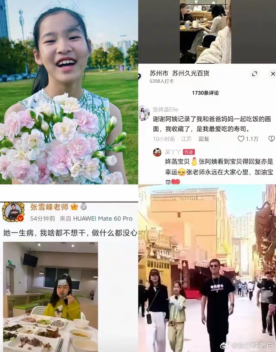 张雪峰女儿,最近干了一件让所有人都鼻头发酸的事。她开始在网上,默默收集所有“偷拍”她和爸爸的照片。起因是一个网友,发了一张偶遇他们一家三口吃寿司的照片。照片里,那个男人眉眼带笑,看着女儿,跟所有普通的父亲一样。没有警告,没有律师函。没有精致摆拍,没有刻意营造,全是路人随手拍下的日常:机场扛在肩头、车站蹲下系鞋带、便利店笨拙拆棒棒糖……每一张都写满最朴素的父爱。比起明星式的严防死守,这个女孩用最温柔的方式,守护着属于自己的温暖。她收集的哪里是照片,分明是爸爸不为人知的温柔,是陌生人递来的善意。每一张都有点模糊,带着路人的水印,却都清清楚楚地刻着一个父亲的爱。那个小姑娘,没有哭,也没有闹,她只是安静地坐在屏幕前,伸出小手,一张一张,把这些来自陌生人善意的馈赠,郑重地存进一个新建的文件夹里。那个文件夹,名字可能就叫“爸爸”。这大概是,整个互联网为一个孩子,办过最温柔的一场“寻物启事”。