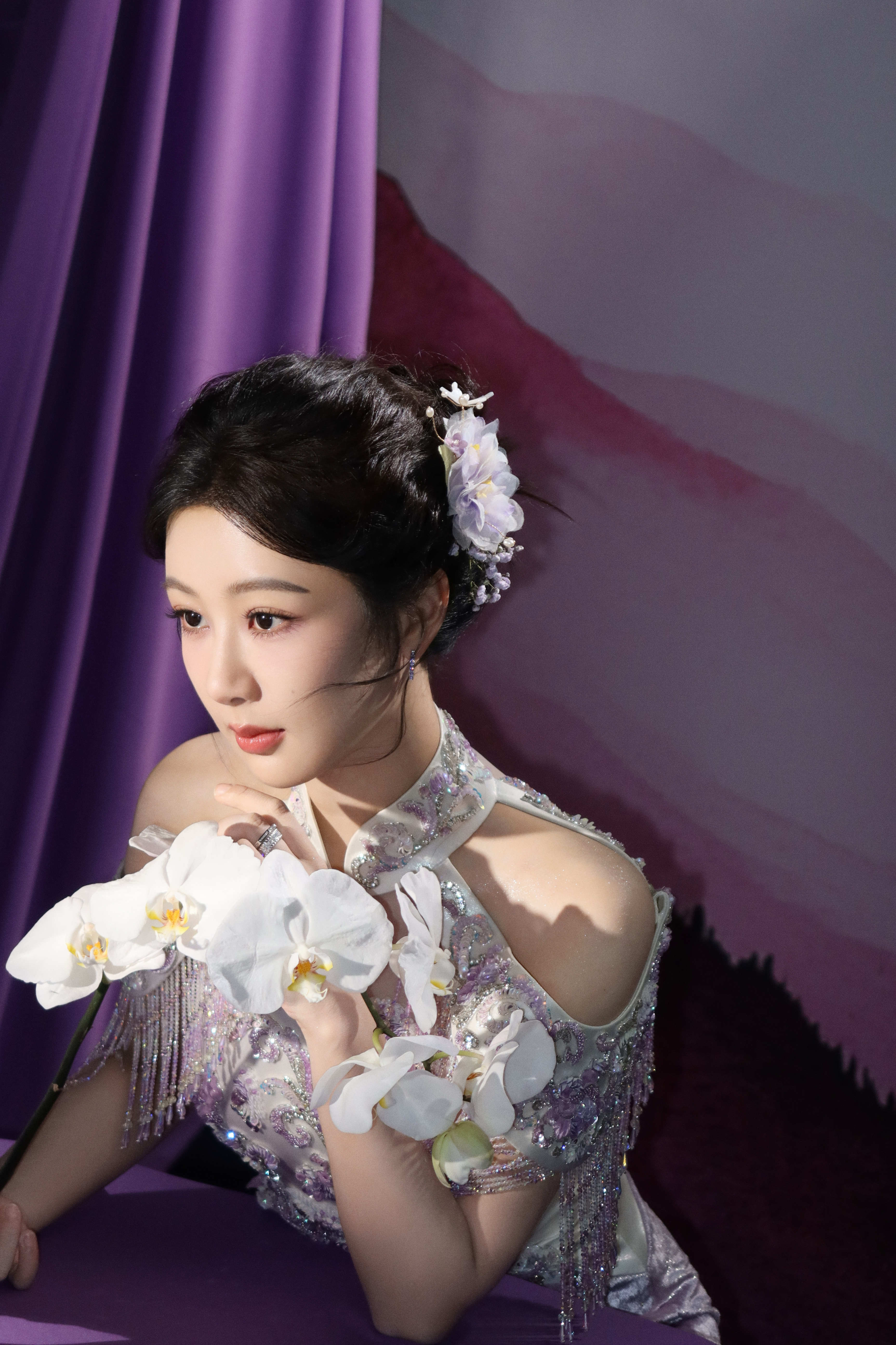 杨紫/玉兰花开💐杨紫紫色旗袍直播造型*杨紫没人通知我啊