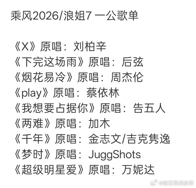 乘风2026一公分组选曲 乘风一公分组选曲 乘风2026今天不直播,期待明天上线