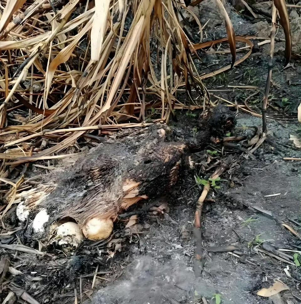 清明,网友扫墓。发现一块山火烧过的地方,竟然有只鸟雀为护蛋而被活活烧死。伟大的母
