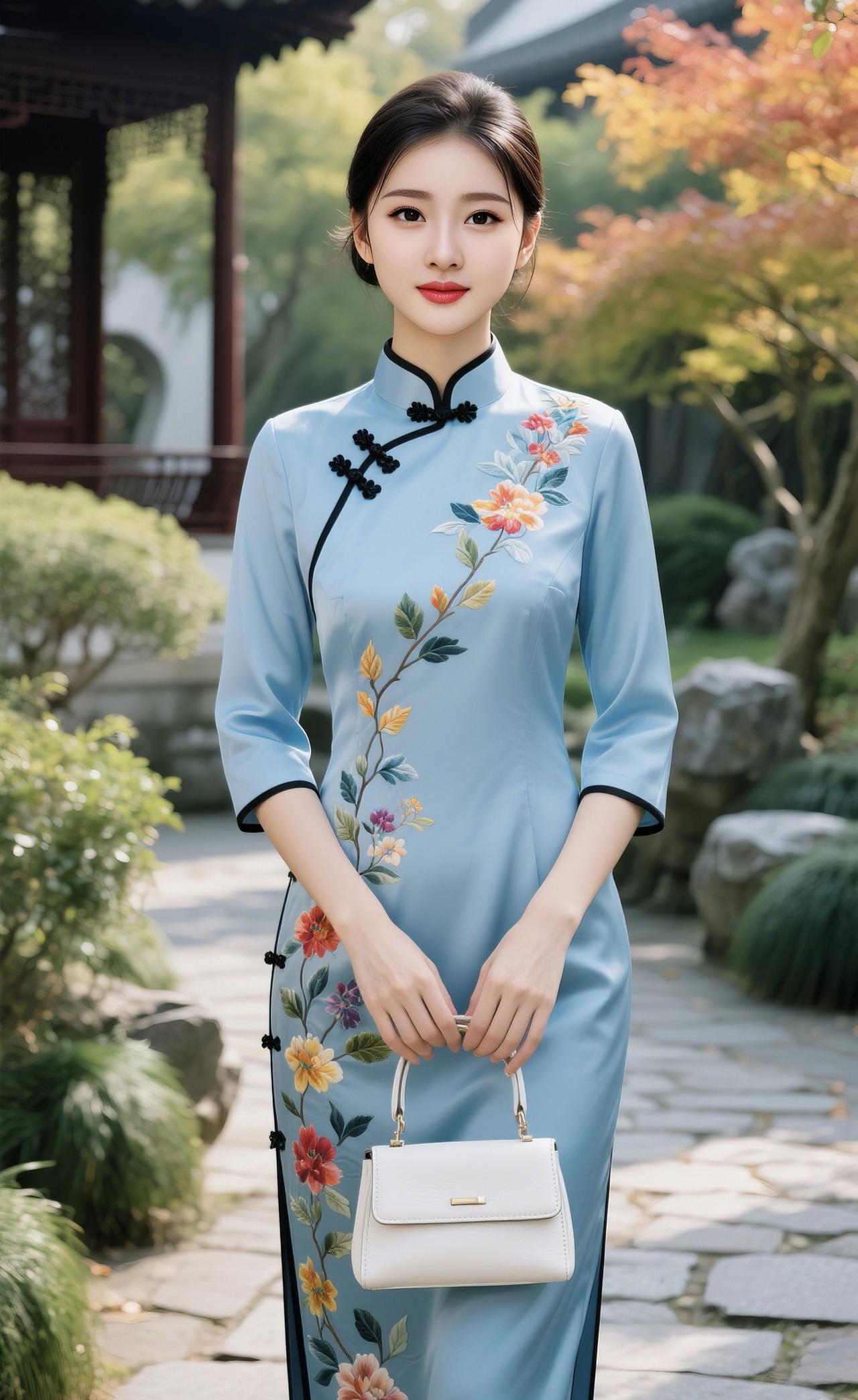 《一袭旗袍,一梦芳华》 针脚藏尽岁月轻, 盘扣凝住旧时晴。 一领高立风骨在, 斜襟漫卷江南风。 丝缎滑过玲珑影, 暗香浮动月微明。 不必浓妆添颜色, 自有温婉入骨清。 裙摆轻摇风细细, 一步一莲踏光阴。 旧梦依稀穿堂过, 半是温柔半是韵。 人间多少繁华事, 都在一袭旗袍里。 流年不语芳华在, 东方风骨永不息。 江南风旗袍照 旗袍复古照 江南旗袍照 旗袍风景 江南旗袍故事感 旗袍烟雨景 旗袍溪畔写真
