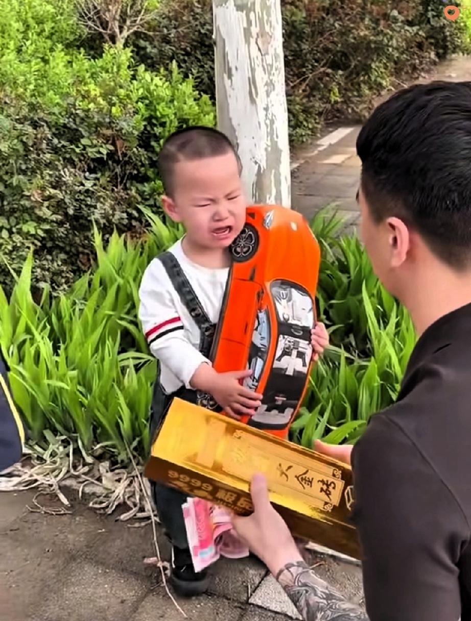 河北一位爸爸带俩娃祭祖,回家竟从孩子裤兜里搜出一堆“宝贝”,直接给整个人看傻了 河北一位爸爸带娃祭祖,返程时发现孩子走路怪里怪气,兜子鼓得离谱,一搜直接看傻。 本该烧给先人的冥币、纸金砖,全被娃偷偷揣进兜里,最绝的是小儿子还抱走了纸糊豪车,死活不肯撒手。 在大人眼里这是忌讳、是敬意,可在孩子眼里,不过是好看又好玩的小玩意儿,哪懂什么阴阳相隔。 其实孩子的世界从来都简单,在他们眼里,冥币是好看的纸,纸金砖是闪亮的砖头,纸跑车是好玩的模型,哪懂什么阴阳相隔与祭祀敬畏。 我们总说祭祀是对先人的敬重,可孩子的天真,却让这场仪式多了份鲜活的趣味。 这份天真挺暖心,没有世俗的拘谨,只凭着本能喜欢。 有时候大人想得太复杂,反而少了这份直白可爱。 老祖宗的“家产”被俩小娃“打劫”,未必是件扫兴事,反而让肃穆的祭祖多了份烟火气。 换作是你,遇到娃偷偷拿祭祀品回家,会忍不住笑还是会严肃教育呢?