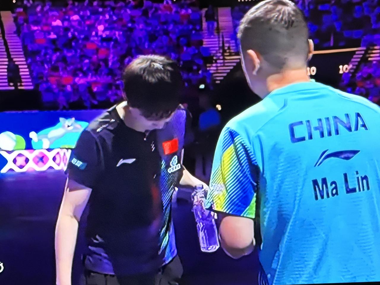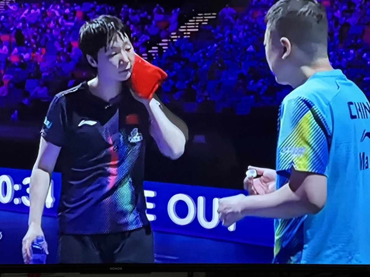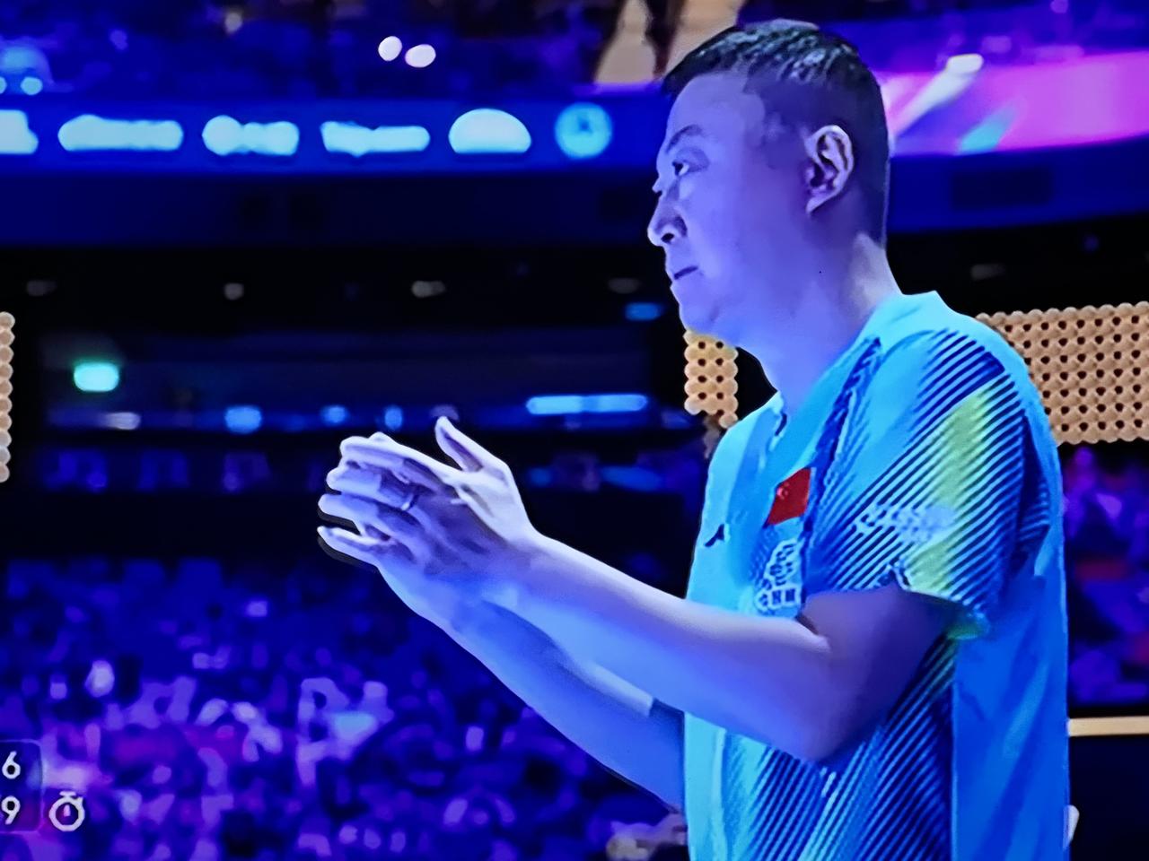 马琳这个暂停叫得太及时了! 半决赛,积分排名世界第二的王蔓昱对阵韩国名将申裕斌,两人的比分咬得很紧,申裕斌总比分二比一领先王蔓昱,第四局王蔓昱九比六领先时,场外指导马琳果断叫了暂停对王蔓昱进行了及时的指导。 暂停回来,王曼昱果然连连得分赢下了第四局,把大比分追平到二比二,这个暂停效果明显。 暂停时,王蔓昱走向场外教练马琳时,王蔓昱连打几个喷嚏,想到她昨夜的四分之一决赛与日本削球手的那场球赛打了将近一个半小时,都没有得到很好的休息,今日连续作战,真是太辛苦了! 期待王蔓昱胜利晋级总决赛会师孙颖莎!
