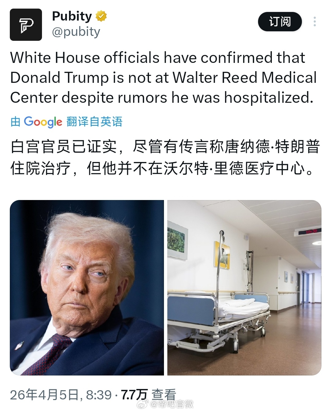 辟谣说特朗普不在沃尔特·里德医疗中心,但没说他在不在其它医院,难绷美国前参议员表示特朗普已经住院
