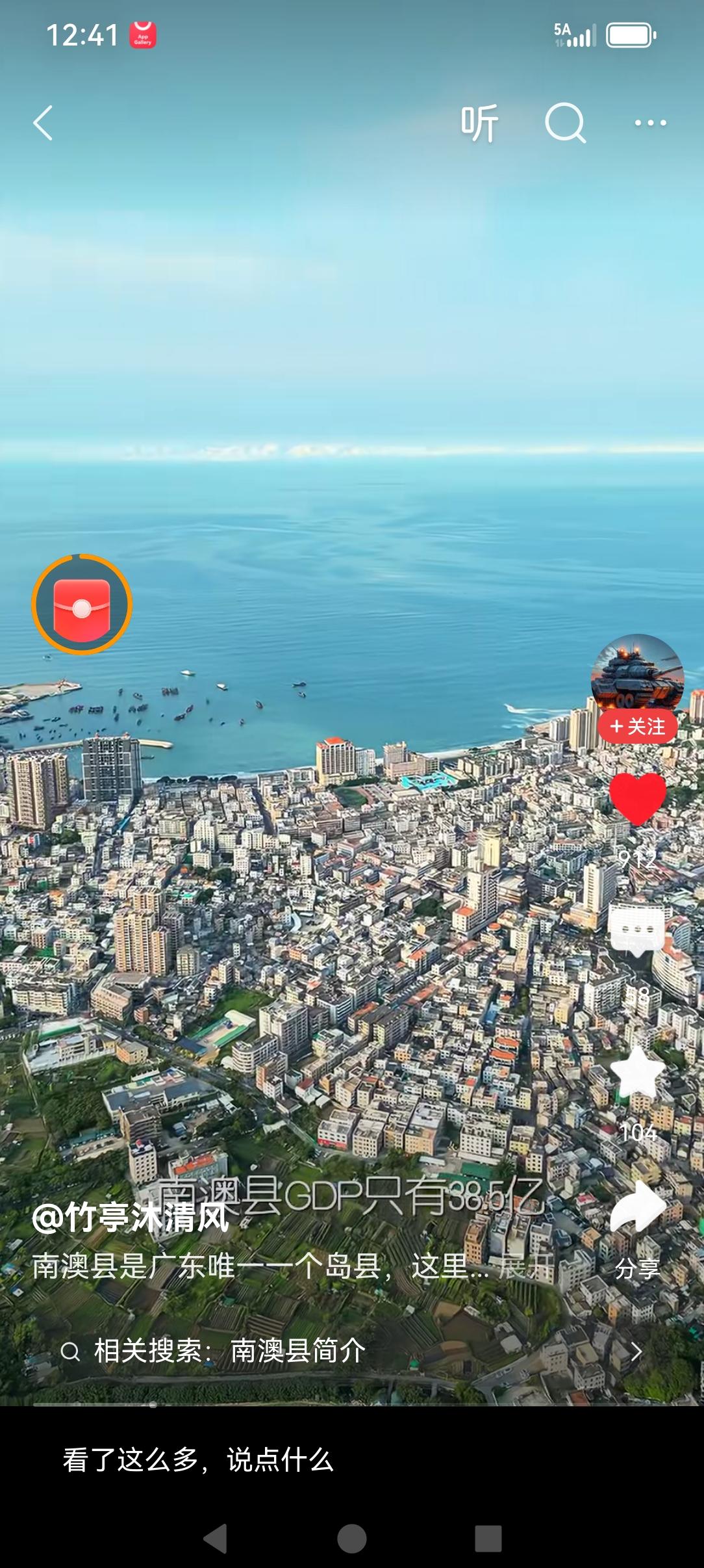 这个只有常住人口6.8万,GDP四十亿不到的广东省南澳县,景色怡人,是汕头地区的一个海岛县,看这县城建在山上,建在了海边,基呼家家都是海景房,主要靠来这里游玩的人们及海上之源。