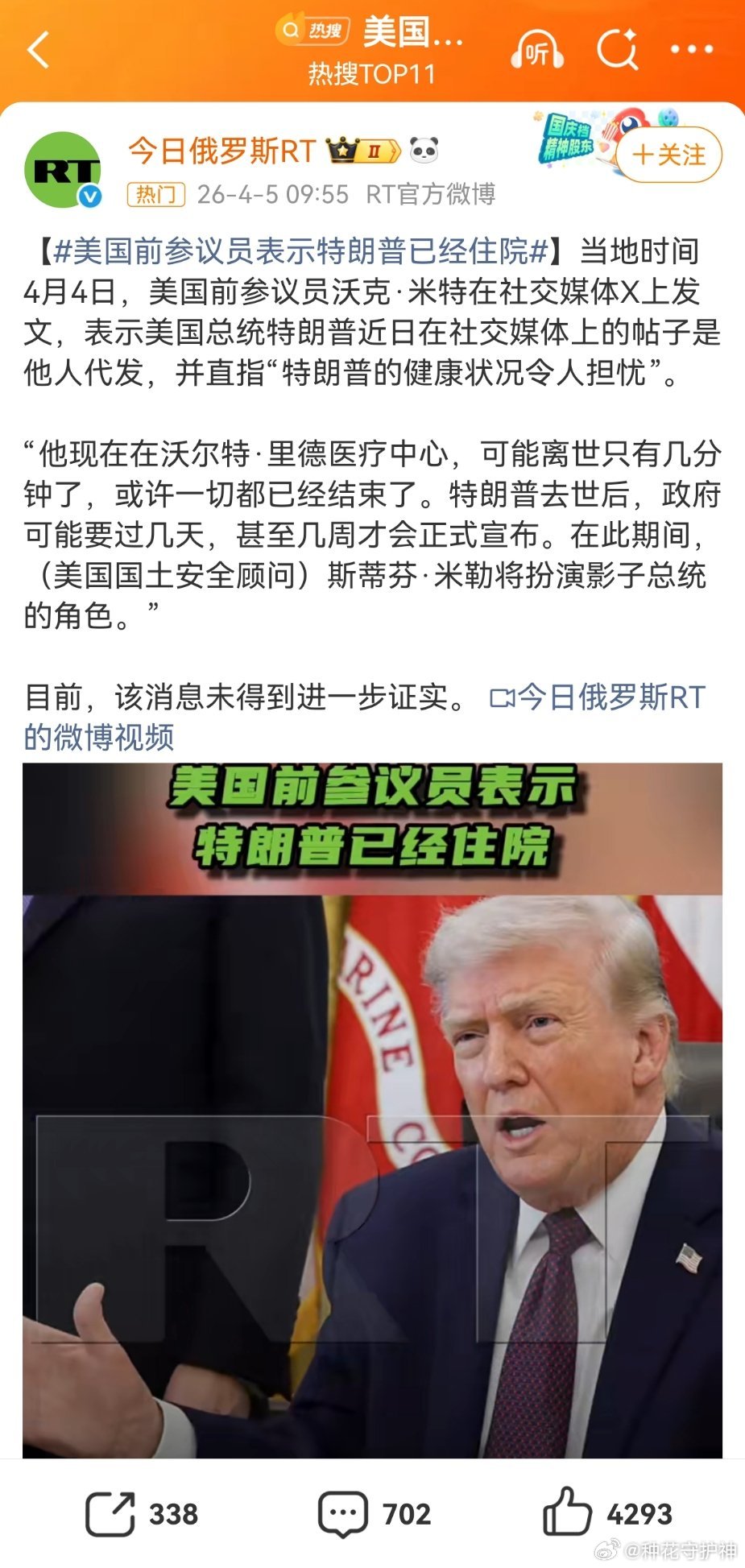 从医学角度客观分析,特朗普现年79岁(2026年),属于高龄人群。公开信息显示他有体重偏高、饮食结构不理想、长期缺乏规律运动等问题,且曾因新冠住院,也有过体检指标异常(如胆固醇、血压)的记录。高强度的工作压力、睡眠不足、情绪频繁波动(尤其是近期中东战事和国内政治斗争带来的精神负荷),确实会增加心脑血管疾病、代谢综合征、认知功能衰退等风险。有研究指出,长期处于“应激状态”的老年人,其平均预期寿命会显著低于同龄普通人群。但具体到个人,寿命受遗传、医疗条件、偶然事件等多因素影响,无法准确预测。只能说,从公共卫生角度看,特朗普目前的生理和心理状态,属于“高危人群”。但这只是概率,不是定论。我们还是聚焦战局,不在这方面做无根据的断言。